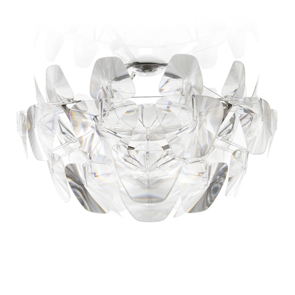 Die Aufhebung materieller Schwere und Leichtigkeit waren die richtungsweisenden Projektvorgaben bei der Realisierung von Hope. Paolo Rizzatto und Francisco Gomez Paz haben Hope ein originelles Design verliehen, das auf faszinierende Art und Weise mit dem austretenden Licht interagiert. Die äußeren Blütenblätter bestehen aus Polykarbonat und sind in Wirklichkeit flache Fresnel-Linsen mit einem außerordentlichen Reflexions- und Lichtbrechungsvermögen. Sie verstärken den faszinierenden Effekt des Lichts und reduzieren den Energieverbrauch der Leuchte.