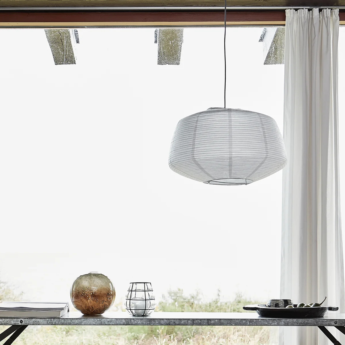 Das leicht durchlässige Material sorgt für eine weiche und angenehme Lichtverteilung. Der Schirm ist sowohl allein aber besonders zusammen in verschiedenen Varianten ein Hingucker über dem Esstisch, im Eingangsbereich oder über der Küchenzeile.