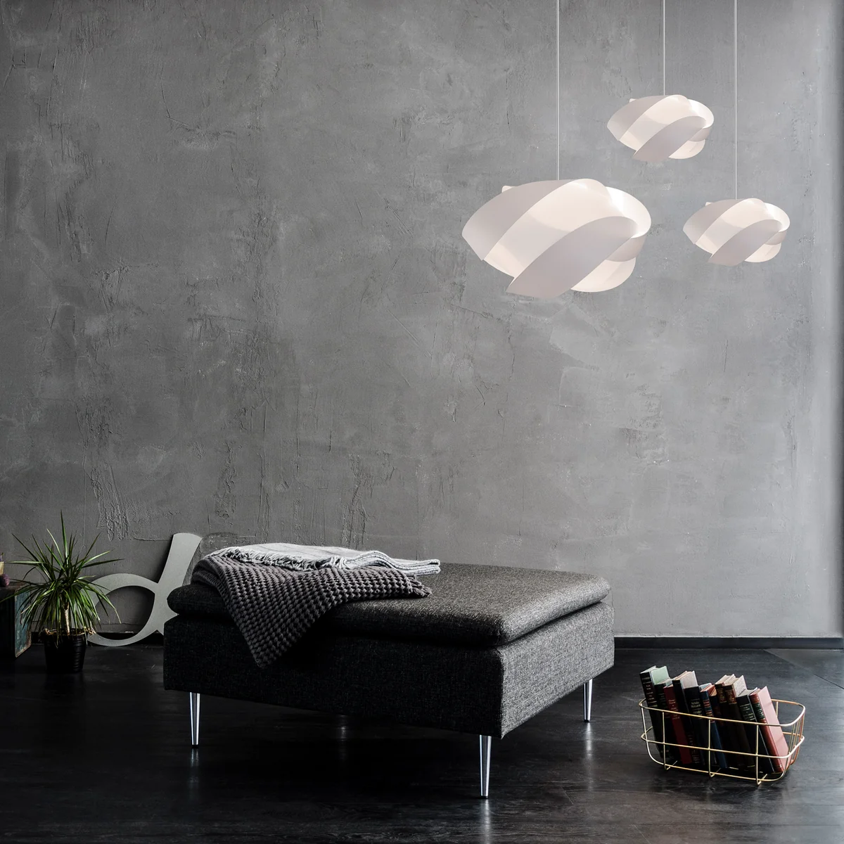 Die Ribbon Leuchte von Umage erinnert mehr an eine künstlerische Skulptur als an eine klassische Leuchte. Der Designer Lorenzo Radaelli ließ sich bei seinem Entwurf von der Möbiusschleife inspirieren, einem zweidimensionalen, nahtlos mit sich selbst vernähtem Band. Mit ihrer dynamisch anmutenden Form sorgt die Ribbon Pendelleuchte für ein elegantes Licht- und Schattenspiel an der Wand, das für einen besonderen Hingucker und eine gemütliche Atmosphäre im Raum sorgt.