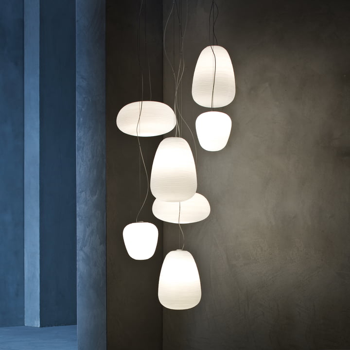 Die Rituals Pendelleuchte, die von den Architekten und Designern Ludovica + Roberto Palomba für Foscarini entworfen wurde, besticht vor allem durch ihre Plastizität. Die Leuchten bewegen sich spielerisch auf dem schmalen Grat zwischen Morgenland und Abendland. Die Herausforderung war es, die Leichtigkeit des Washi-Papiers der orientalischen Laternen in einer Gruppe von Glasleuchten umzusetzen.