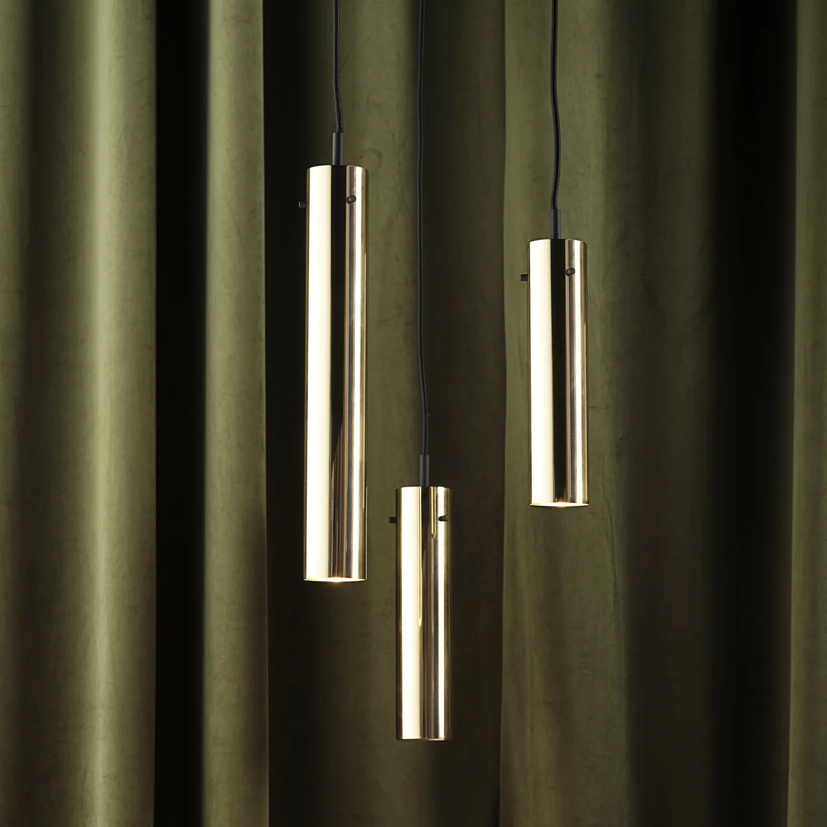 Zeitlose Pendelleuchte aus Edelstahl oder Messing