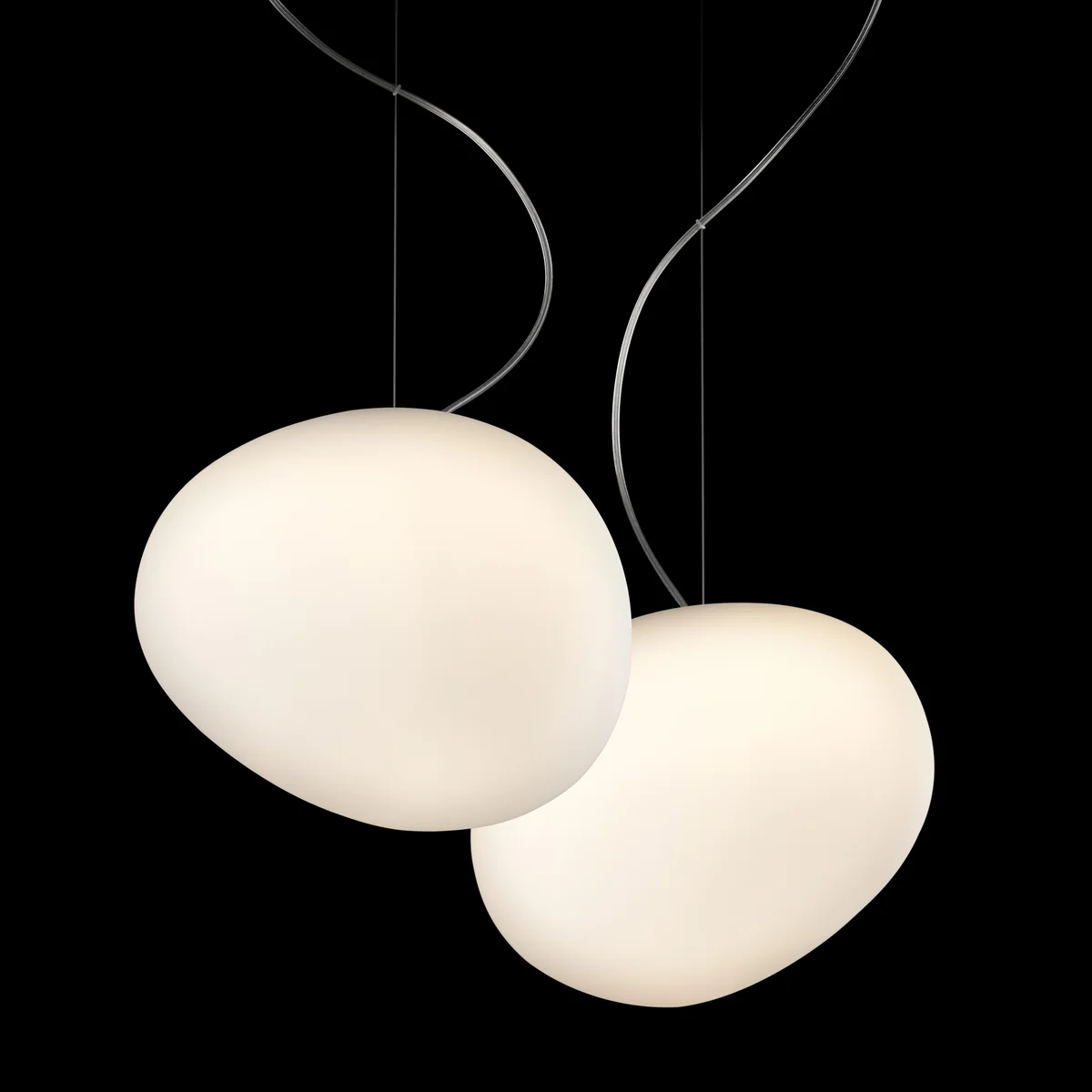 Die Gregg Pendelleuchte LED wurde von den italienischen Architekten und Designern Ludovica und Roberto Palomba entworfen. Die asymmetrische Form, sowie die weiß satinierte Oberfläche erinnert stark an von Wasser geschliffene Kieselsteine. Mit ihrer skulpturalen Silhouette zeigt sich die zarte Leuchte aus jedem Blickwinkel in einer anderen Form, was sie zu einem echten Hingucker macht.