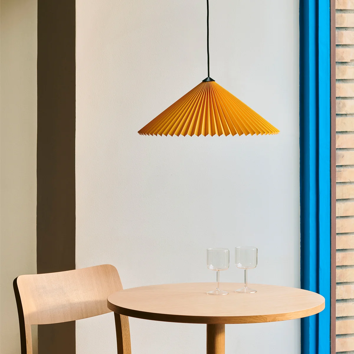 Die Matin Pendelleuchte aus dem dänischen Hause HAY besteht aus einem plissierten Baumwollschirm und einer geflochtenen Baumwollschnur, die eine funktionelle und elegante Deckenleuchte ergeben. Der Schirm verleiht jedem Raum im Haus ein warmes und einladendes Ambiente und ist in verschiedenen Größen und Farben erhältlich.