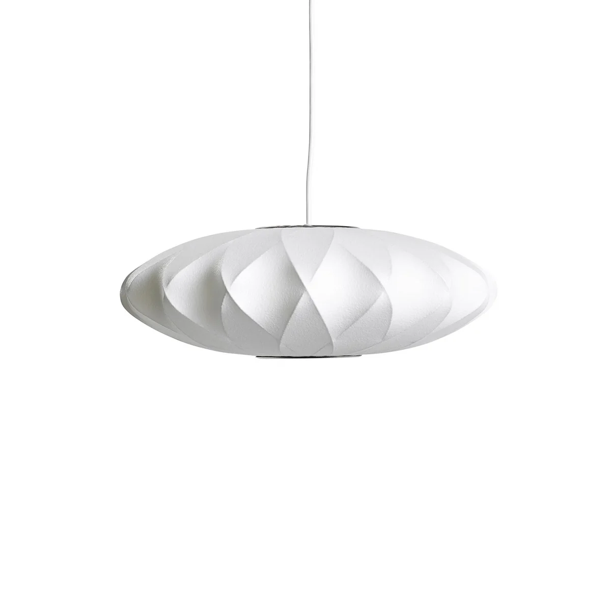 Die Nelson Saucer Crisscross Bubble Pendelleuchte von HAY ist ein Entwurf von George Nelson aus dem Jahr 1947. Damals war er auf der Suche nach einer passenden Beleuchtung für sein Büro und stieß dabei auf eine Reihe von seidenmatten, schwedischen Pendelleuchten, die ihm jedoch zu teuer erschienen. Kurzerhand entschloss er sich dazu eigene Leuchten zu kreieren, die seinen ästhetischen Vorstellungen entsprachen.