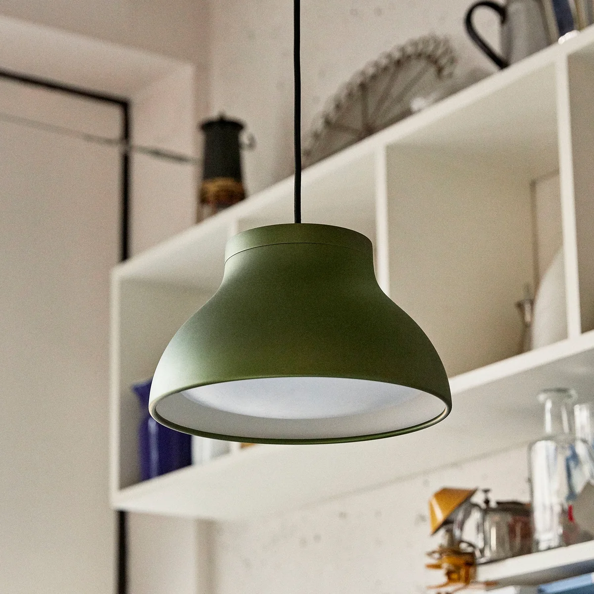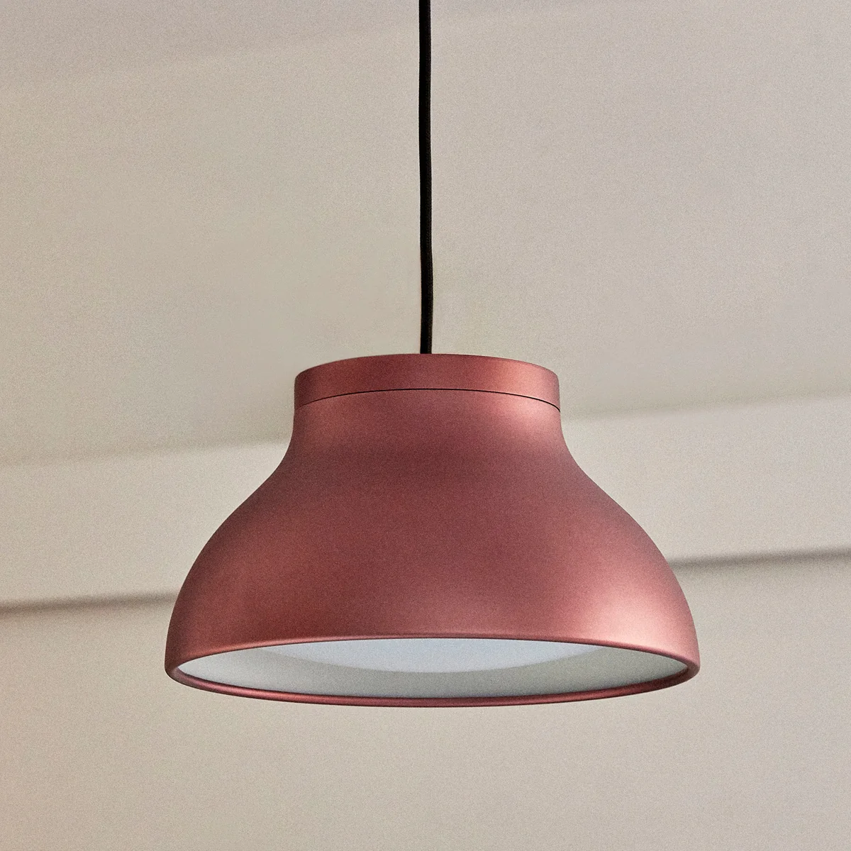 Die PC Pendelleuchte ist ein Entwurf des Designers Pierre Charpin für HAY und Teil einer kleinen Serie bestehend aus Tischleuten und Pendelleuchten. Gefertigt ist der Schirm der Pendelleuchte aus eloxiertem Aluminium, wodurch die Oberfläche korrosionsbeständig wird. Die weiche Form sorgt für eine harmonische Gesamterscheinung im Ambiente und wirkt zurückhaltend sowie edel zugleich.