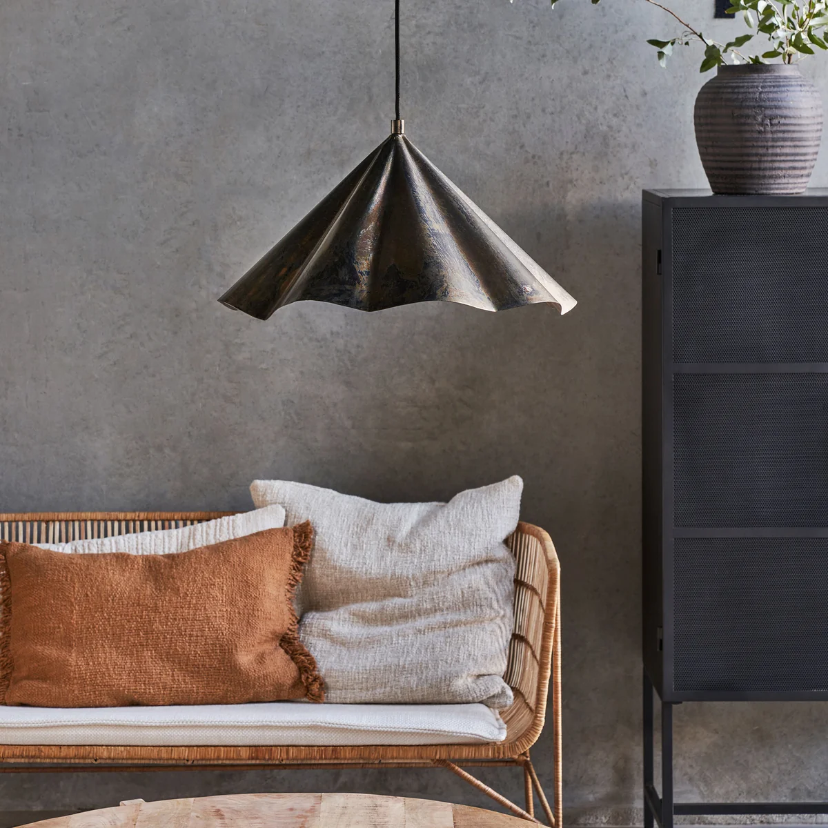 Die Flola Pendelleuchte von House Doctor verleiht deinem Esszimmer im Nu eine erfrischende Atmosphäre. Mit ihrem großzügigen Design und dem industriellen Charme wird sie zum Blickfang über deinem Esstisch. Die fließende Form des Lampenschirms verleiht der Leuchte eine faszinierende Unvollkommenheit, die gleichzeitig vollkommen wirkt. Diese Pendelleuchte ist nicht nur ein praktisches Beleuchtungselement, sondern auch ein stilvolles Dekorationsstück, das jedem Raum ein modernes Update verleiht. Entdecke mit der Flola Pendelleuchte von House Doctor eine gelungene Kombination aus Funktionalität und ästhetischer Raffinesse.