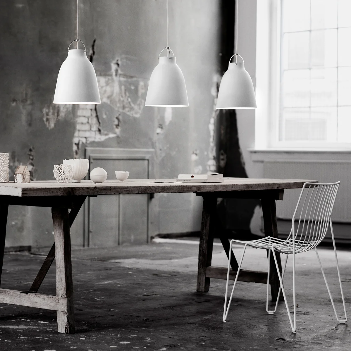 Die Caravaggio P2 Pendelleuchte von Fritz Hansen ist auch mit einem 6 m langen Kabel erhältlich. Caravaggio kann auch in den kleineren Varianten P0 und P1 und in den größeren P3 und P4 Varianten bestellt werden. Außerdem bietet Fritz Hansen Caravaggio auch als Tisch- und Stehleuchte an.
