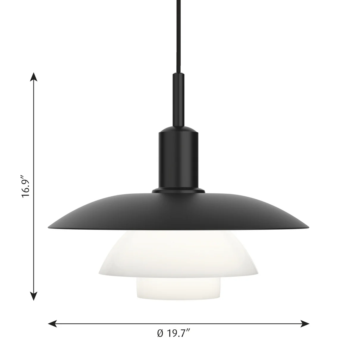 Die Pendelleuchte von Louis Poulsen besteht aus einfarbigem, matt lackierten / gewalzten Aluminium.