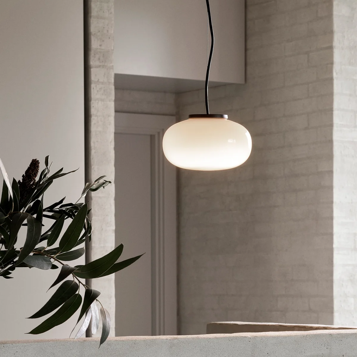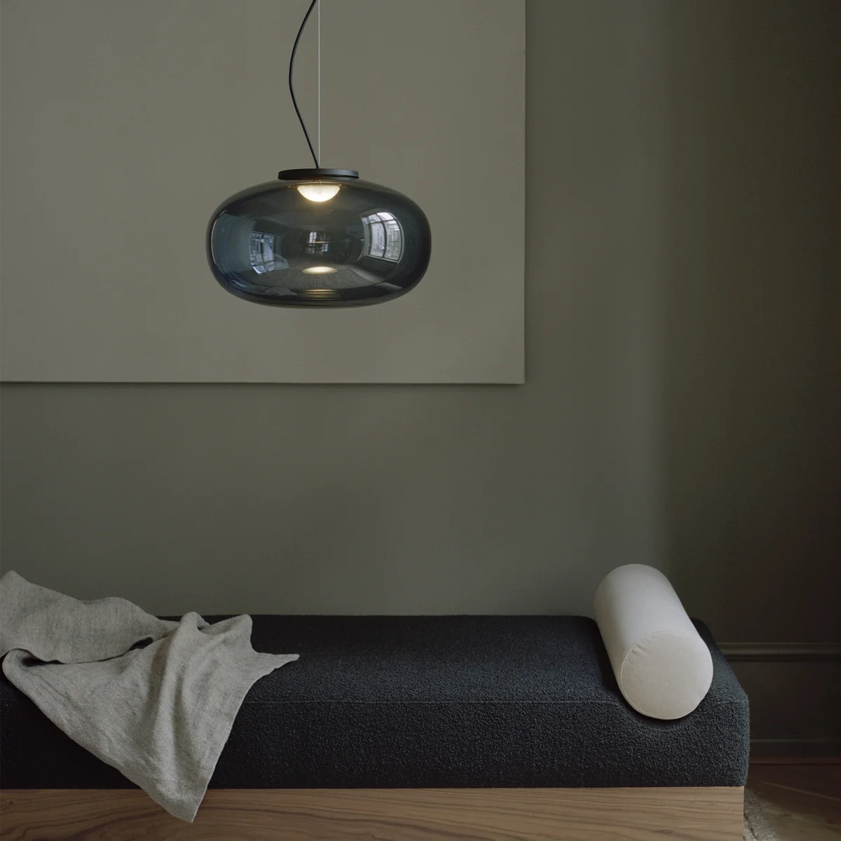 Die Karl-Johan LED Pendelleuchte zeichnet sich durch ihre harmonische Form und die Verwendung erstklassiger Materialien aus. Der Leuchtenschirm besteht aus mundgeblasenem Glas, das in zwei Varianten erhältlich ist: Opalweiß für eine weiche, diffuse Lichtstreuung oder Rauchglas für ein stimmungsvolles Ambiente.