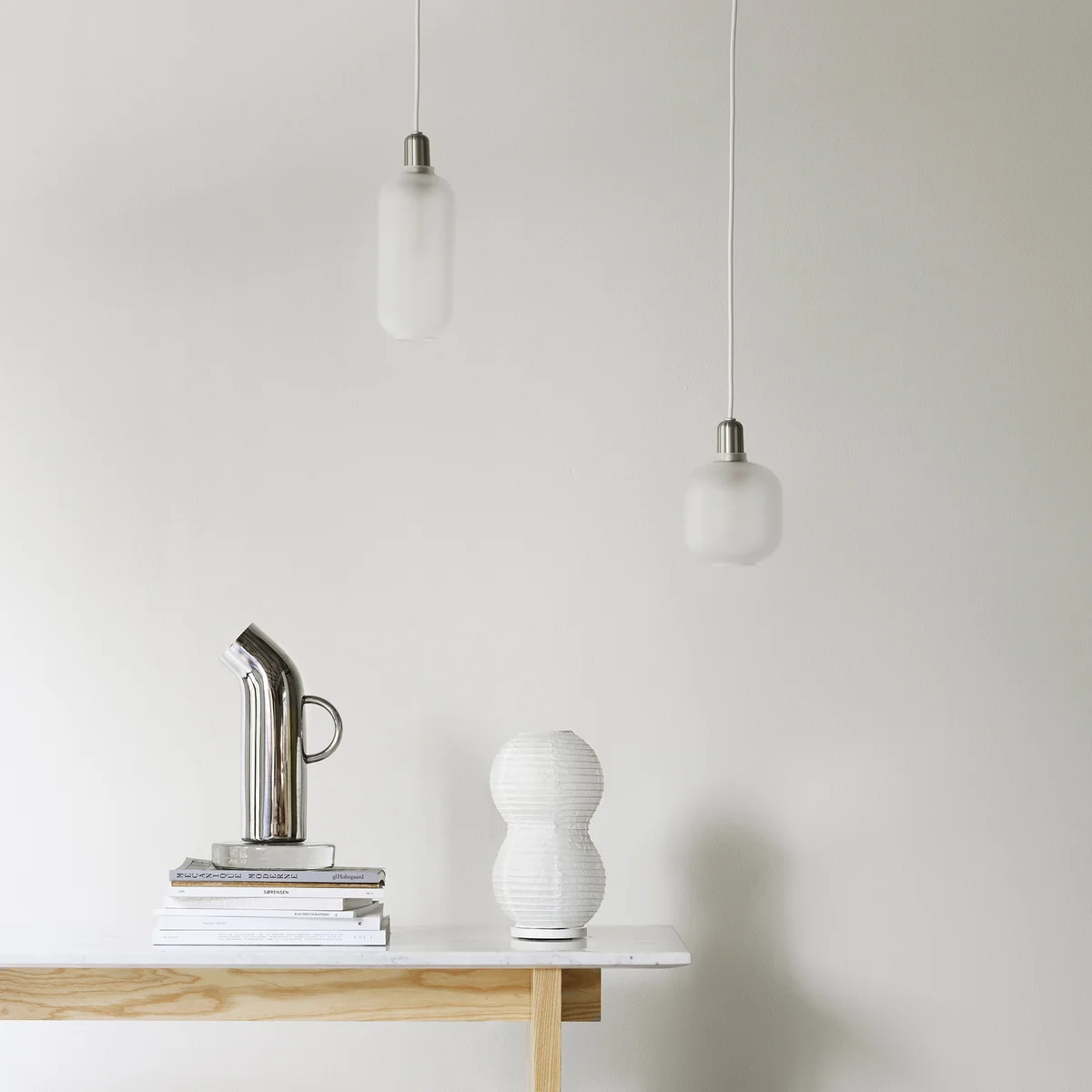 Normann Copenhagen und Legald haben die funktionellen Details betont, zum Beispiel die Art und Weise, wie der Schirm bei der Amp Pendelleuchte auf dem Sockel ruht. Die Verbindung der beiden Naturmaterialien ergibt einen interessanten Kontrast zwischen dem transparenten, leichten Glas und dem massiven, schweren Marmor.