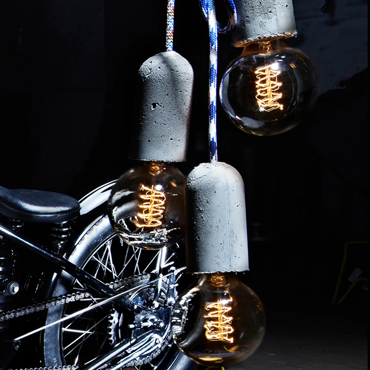Der Betonsockel sorgt für einen zugleich ungewöhnlichen wie auch rustikalen Eindruck, rau und industriell. Wie auch die anderen Pendelleuchten aus der NUD Collection wird Base mit einem drei Meter langen Textilkabel und einem weißen Baldachin aus Kunststoff geliefert.