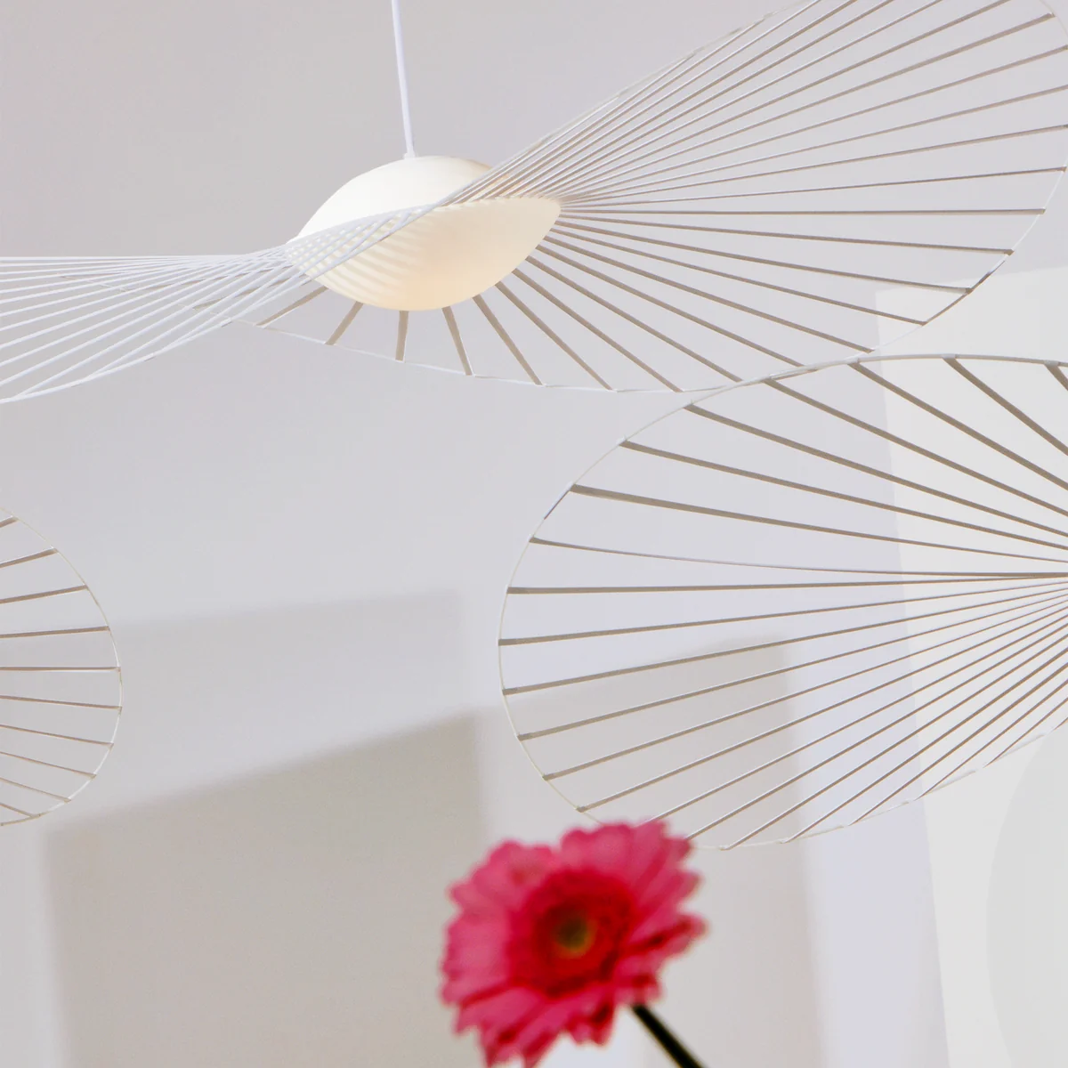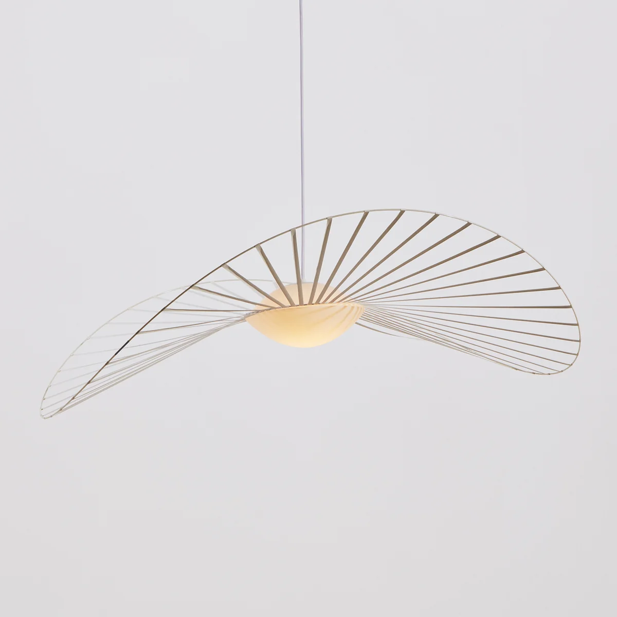 Die Vertigo Nova LED Pendelleuchte von Petite Friture ist der Inbegriff der Ausgewogenheit zwischen Technik und Eleganz. Als wunderschönes, handgefertigtes Design-Objekt regt sie gleichermaßen zum Träumen und Staunen ein. Zu beachten ist hierbei vor allem der dünne Glasfaser-Reifen, der von erfahrenen französischen Handwerkern zart und doch fest an den Sternstäben angebracht wurde. Wenn dann noch die LED-Glaskugel anfängt zu strahlen, bleibt kein Zweifel mehr an dem überaus passenden Namen der Leuchte: Nova, der Stern.