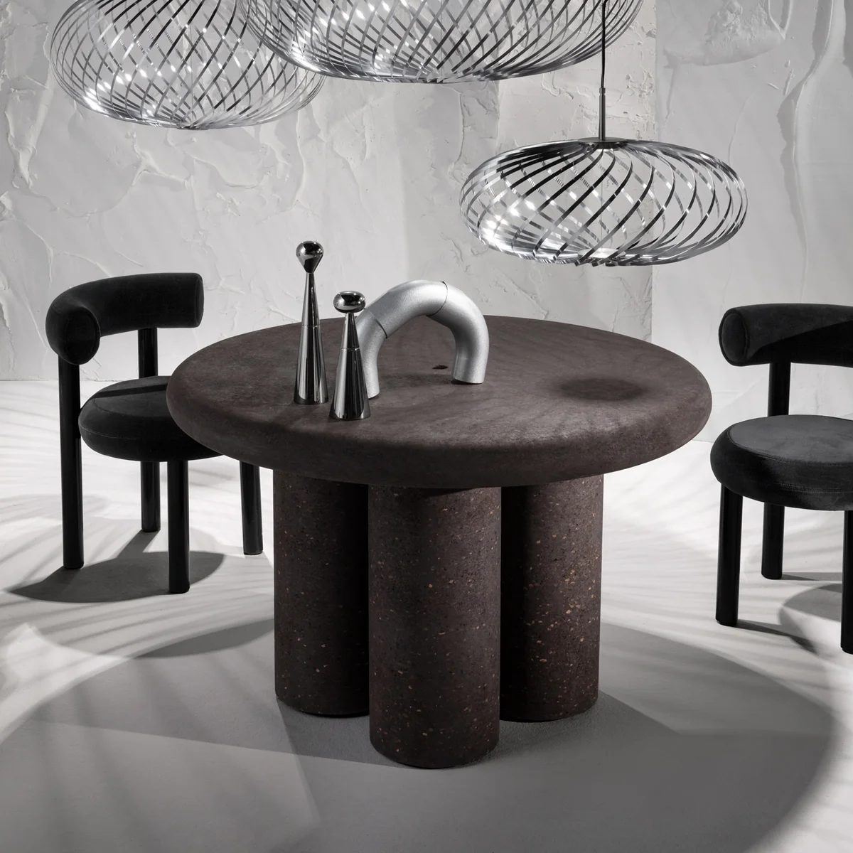 Spring gehört zu einer Serie an Leuchten, die durch ihr extravagantes, edles Design überzeugen. Die Leuchte besteht aus filigranen Edelstahlbändern, die sich sanft um das in der Mitte befindliche LED Licht wickeln. Die Form der Leuchte erinnert mit den geschwungenen Linien entfernt an einen Schneebesen und besitzt so eine schöne Dynamik.