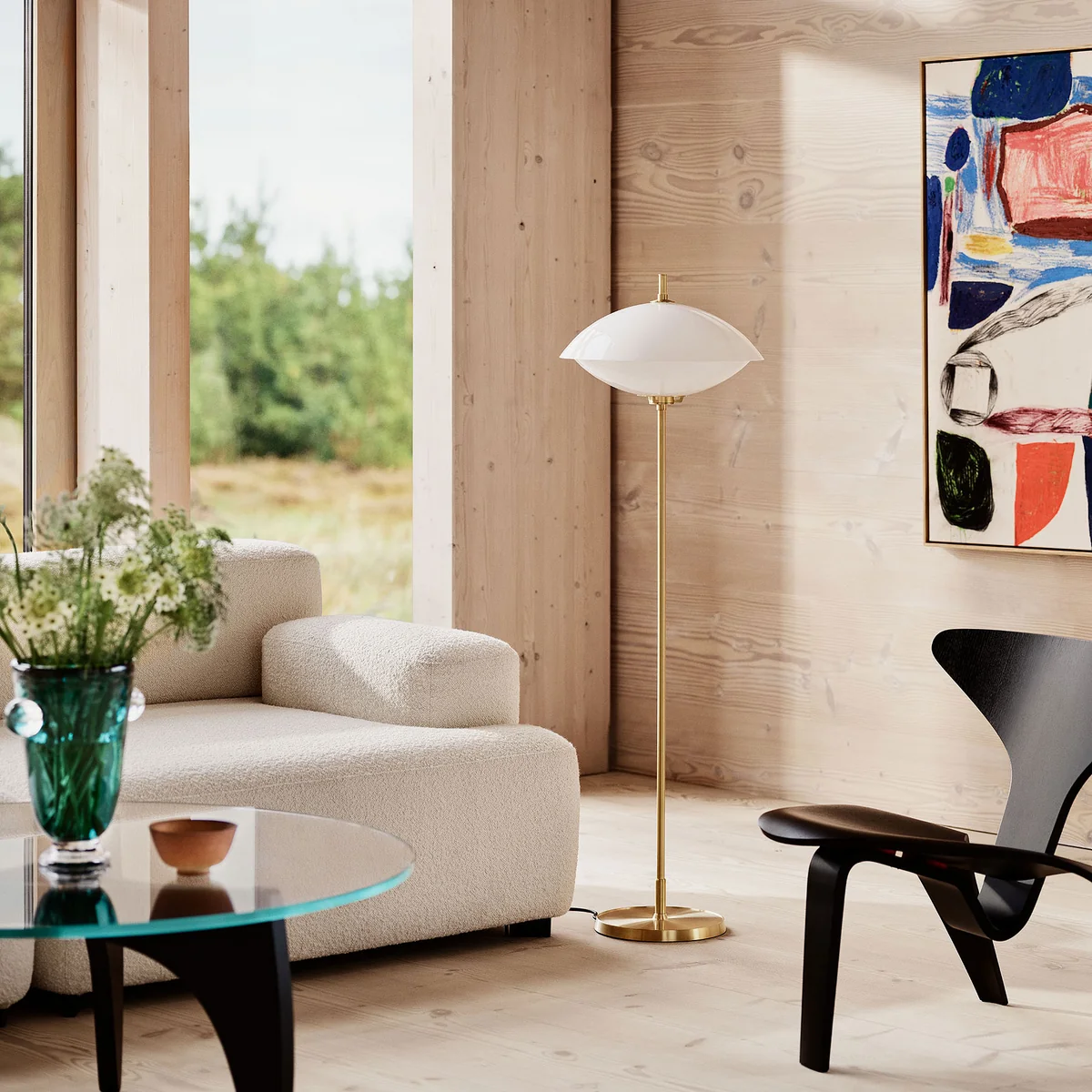 Die Clam™ Stehleuchte von Fritz Hansen, inspiriert von Muscheln, besteht aus mundgeblasenem Opalglas und gebürstetem Messing. Sie kann individuell geöffnet und geschlossen werden, wobei sie ihre leuchtende Lichtperle im Inneren enthüllt. Das zeitlose Design von Ahm & Lund trägt nicht nur zur Aufhellung des räumlichen Ambientes bei, sondern hebt auch die Stimmung mit seiner zeitlosen Ästhetik.