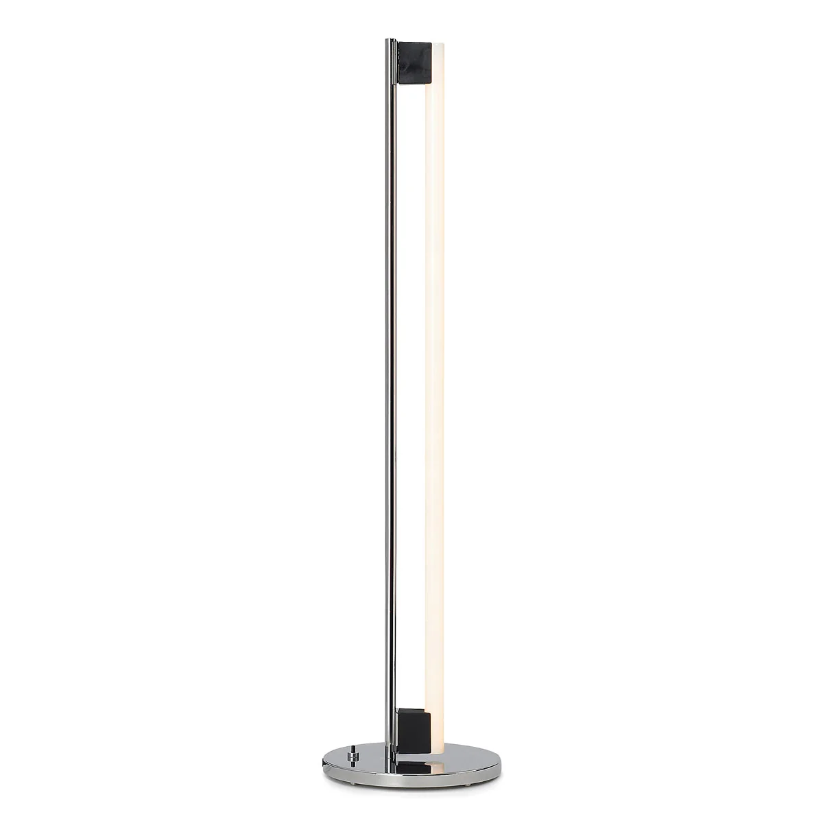 Tube Light gilt als ein Klassiker unter den Stehleuchten und zeichnet sich durch ihr einzigartiges Design aus: Leuchtenkörper und Leuchtmittel stellen zwei parallele Linien dar, die sich vom Boden aus senkrecht emporstrecken und einen außergewöhnlichen Kontrast bilden. Denn während der Leuchtenkörper durch seine verchromte Oberfläche kühl und hart wirkt, spendet die LED-Leuchte ein warmes, weiches Licht. Kunststofffassungen verbinden die beiden Elemente.