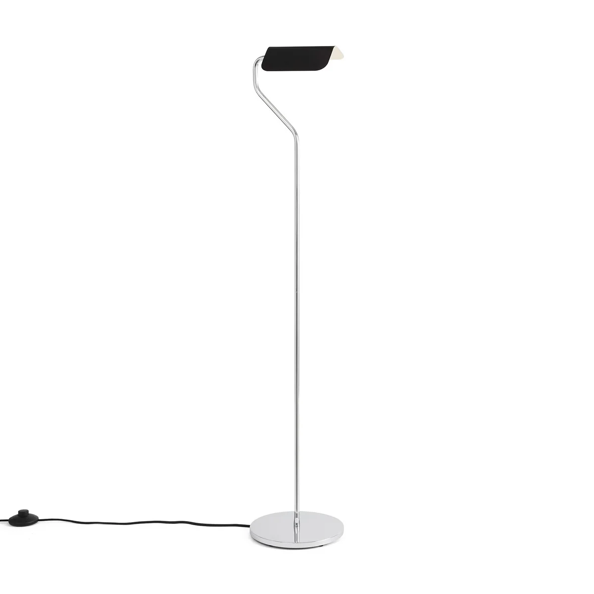 Die Apex Stehleuchte verbindet das klassische Design der Banker’s Light mit einer zeitgemäßen, farbenfrohen Note. Entworfen vom britischen Designer John Tree, kombiniert sie archetypische Formen mit moderner Funktionalität. Der gefaltete Stahlschirm bildet eine markante Dachsilhouette, die nicht nur namensgebend ist, sondern auch einen spannenden Kontrast zur verchromten Basis schafft. Dank ihres drehbaren Schirms, der sich um 360 Grad rotieren lässt, ermöglicht die Apex Stehleuchte eine flexible Lichtausrichtung – von gezieltem Leselicht bis hin zu sanfter Umgebungsbeleuchtung. Mit ihrer klaren Ästhetik und vielseitigen Anwendungsmöglichkeiten ist sie sowohl eine funktionale als auch dekorative Ergänzung für unterschiedlichste Räume.