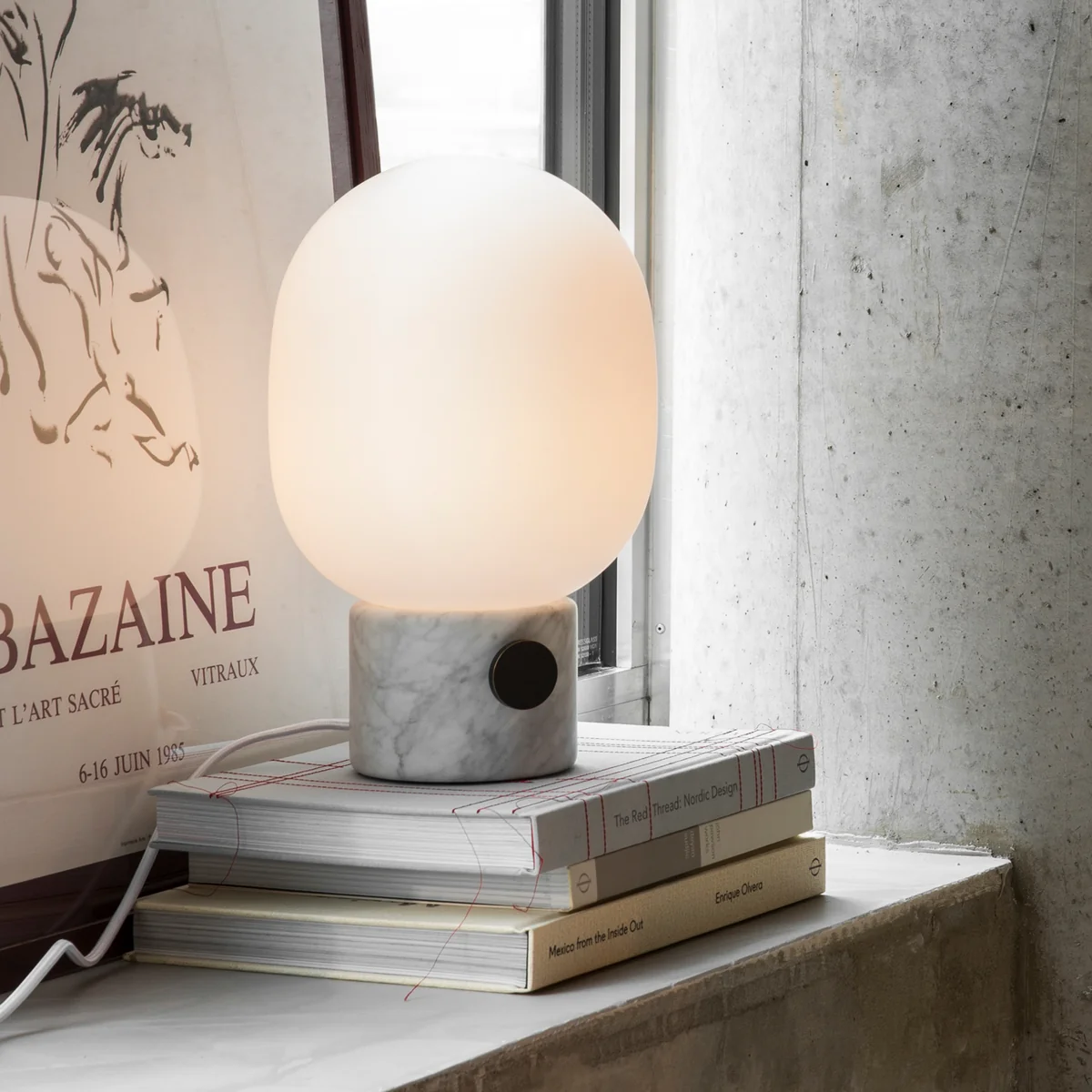 Die JWDA Tischleuchte von Audo ist elegant und robust zugleich. Die zarte Glaskuppel wird mit dem Sockel aus Beton, Stahl oder Messing zu einer besonders formschönen Leuchte vereint, die mit einem zeitlosen Design und industriellem Charakter besticht.