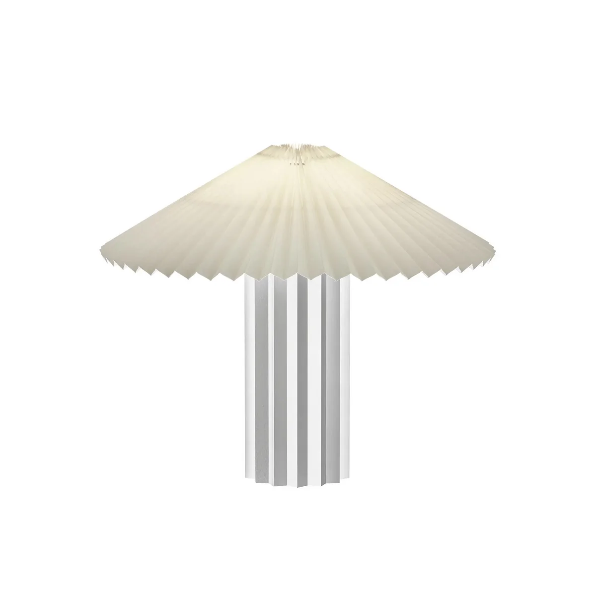 Die Taite Tischleuchte von Blomus, entworfen von der deutschen Designerin Theresa Rand, interpretiert die Kunst des Plissees auf moderne Weise. Ihr gefalteter Stoffschirm fängt die Harmonie von Weichheit und Struktur ein, während der Aluminiumsockel mit seiner plissierten Form den Stoff subtil spiegelt. Das Zusammenspiel von Materialien und Texturen verleiht der Leuchte eine anmutige, zeitlose Präsenz.