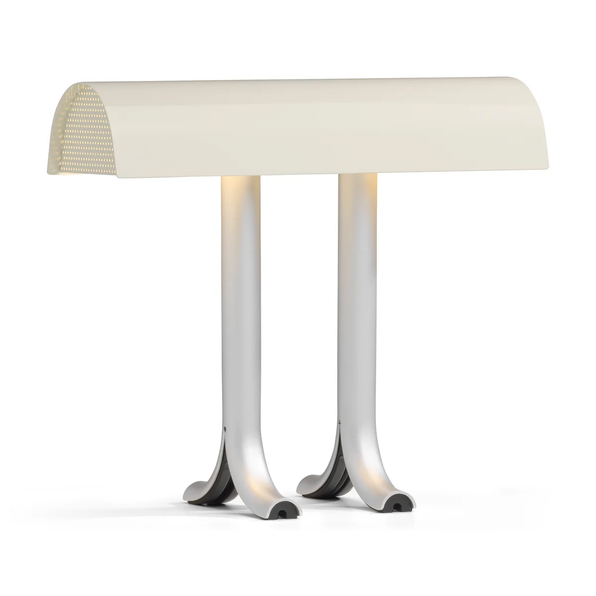 Die Anagram Tischleuchte des Designers Sam Weller für den dänischen Hersteller HAY verbindet Funktionalität mit einem überaus raffinierten, visuellen Reiz. Die robuste Konstruktion, bestehend aus einem großzügig geschwungenen Schirm sitzt auf zwei geteilten, eloxierten Aluminiumbeinen. Die kontrastierenden Elemente der Anagram Leuchte sorgen für einen originellen, zeitgenössischen Touch. Der Schirm wird aus Stahlblech gefertigt. Die Rohrbeine sind für eine lange Lebensdauer ausgelegt und schaffen ein solides Design. Die Tischleuchte ist mit einem Kippschalter ausgestattet und kann mit handelsüblichen Glühbirnen kombiniert werden. Es entsteht ein stimmungsvolles Downlight, welches wunderbar auf Sideboards oder einer Fensterbank platziert werden kann. Erhältlich in unterschiedlichen Farben.