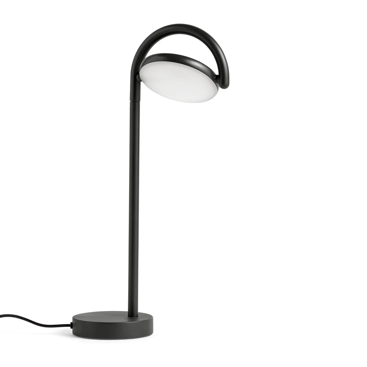 Die Marselis LED Tischleuchte von HAY wurde von Kaschkasch Cologne entworfen, die sich für die Leuchten-Serie von den klassisch gebogenen Straßenlaternen und Straßenschildern inspirieren ließen. In einer kleinen Version als Tischleuchte wirkt die geschwungene Form dynamisch und leicht und sorgt für einen Hingucker auf Schreibtisch, Beistelltisch, Sideboard und Nachttisch.