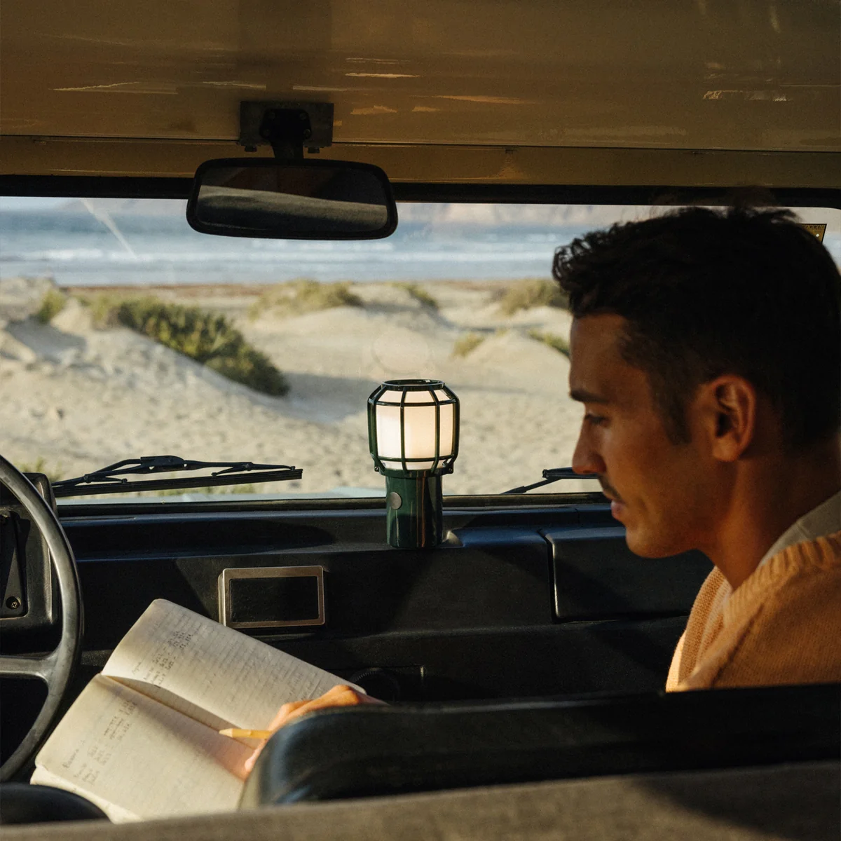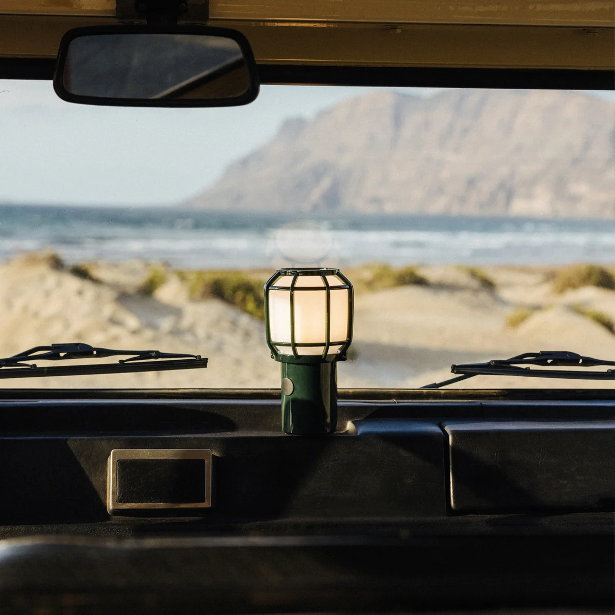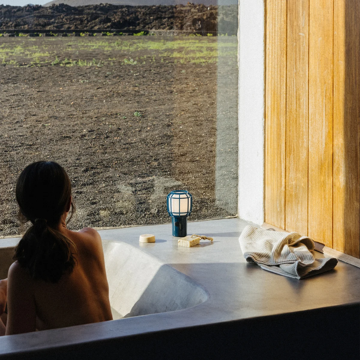 Die Chispa Outdoor Akku LED Tischleuchte von marset erinnert mit ihrem Design an konventionelle Kellerlampen, jedoch ist sie überaus hochwertig gefertigt und überzeugt mit ihrem geringen Gewicht. Dank der Schutzklasse IP44 kann die Outdoor-Leuchte problemlos Wasser ausgesetzt werden.