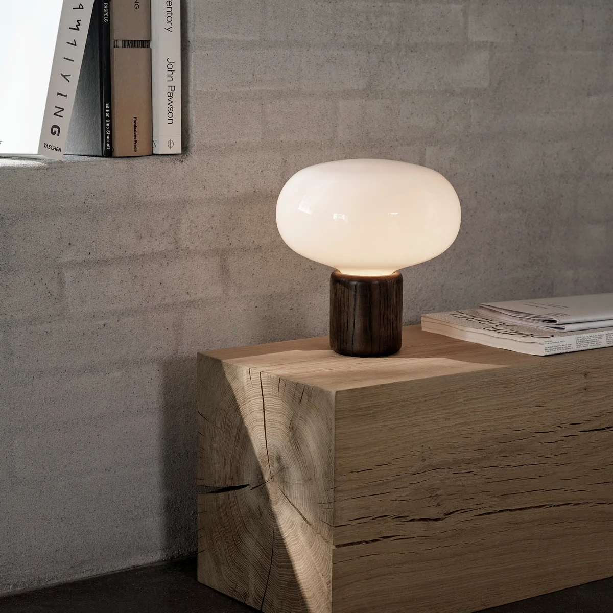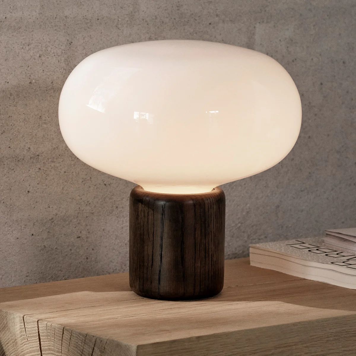 New Works - Karl-Johan Tischleuchte, Eiche geräuchert / Opalglas
