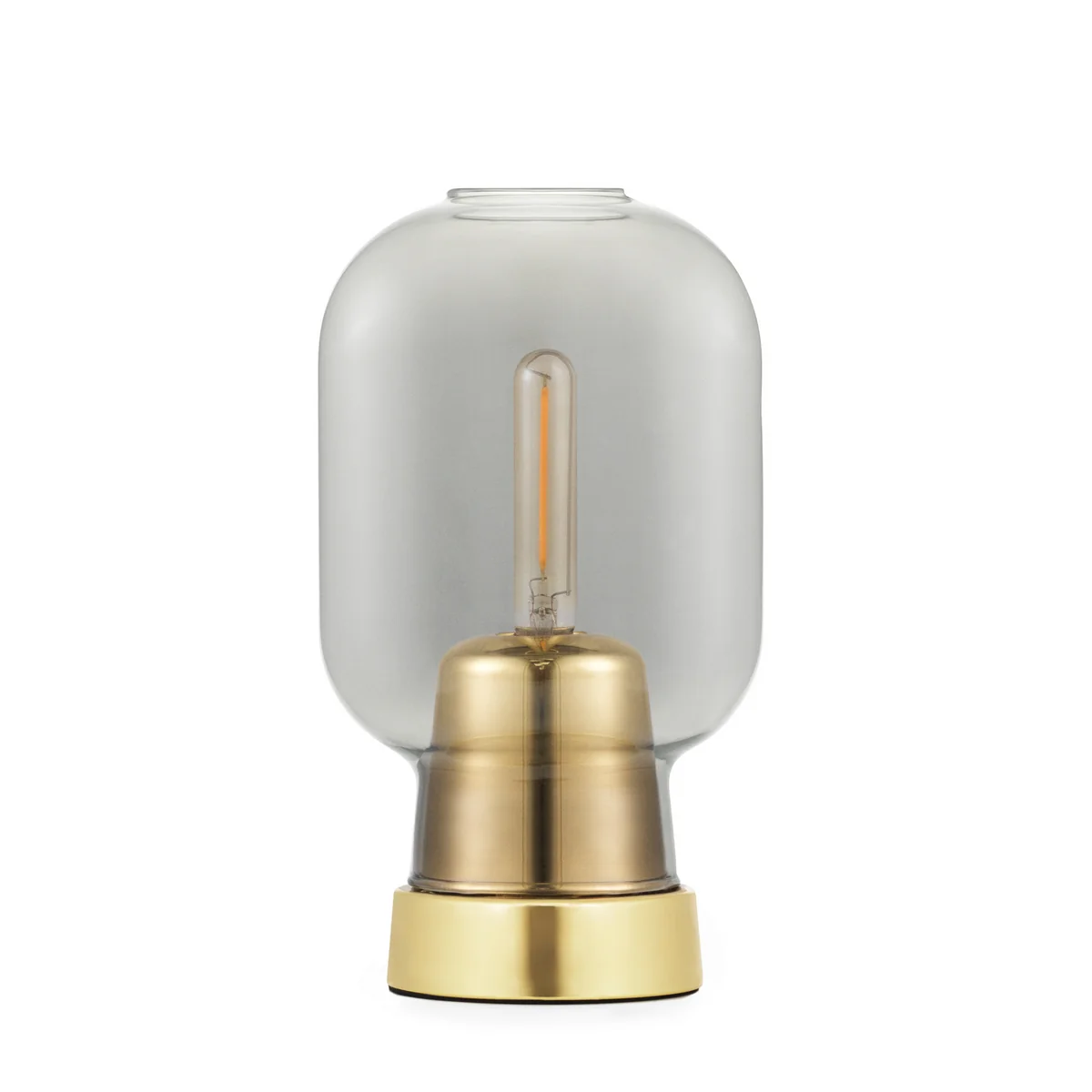 Die Idee für die Form der Amp Tischleuchte entstand, als der Designer Simon Legald zu Hause ein altes Radio aus den 60er-Jahren restaurierte. Bei der Suche nach einem Ersatzteil für das Radio fiel ihm der Schimmer des Röhrenverstärkers auf. Die einfache, ovale Form und der Lampenschirm verweisen darauf – ebenso wie der Name Amp, die englische Bezeichnung für Röhrenverstärker. Die Proportionen der Amp Leuchten von Normann Copenhagen sind sorgfältig ausgearbeitet.