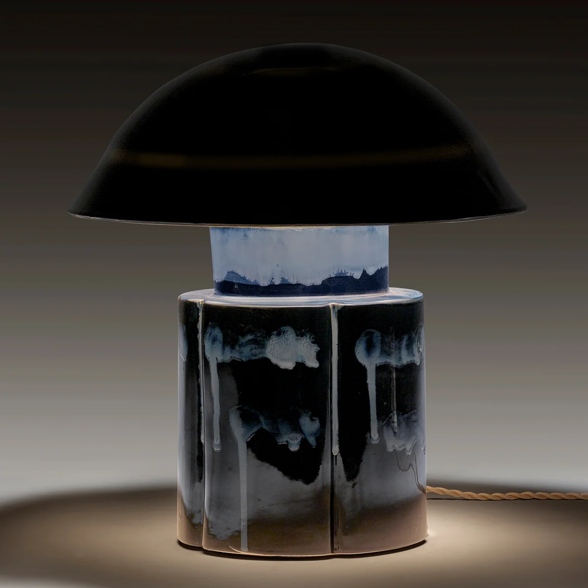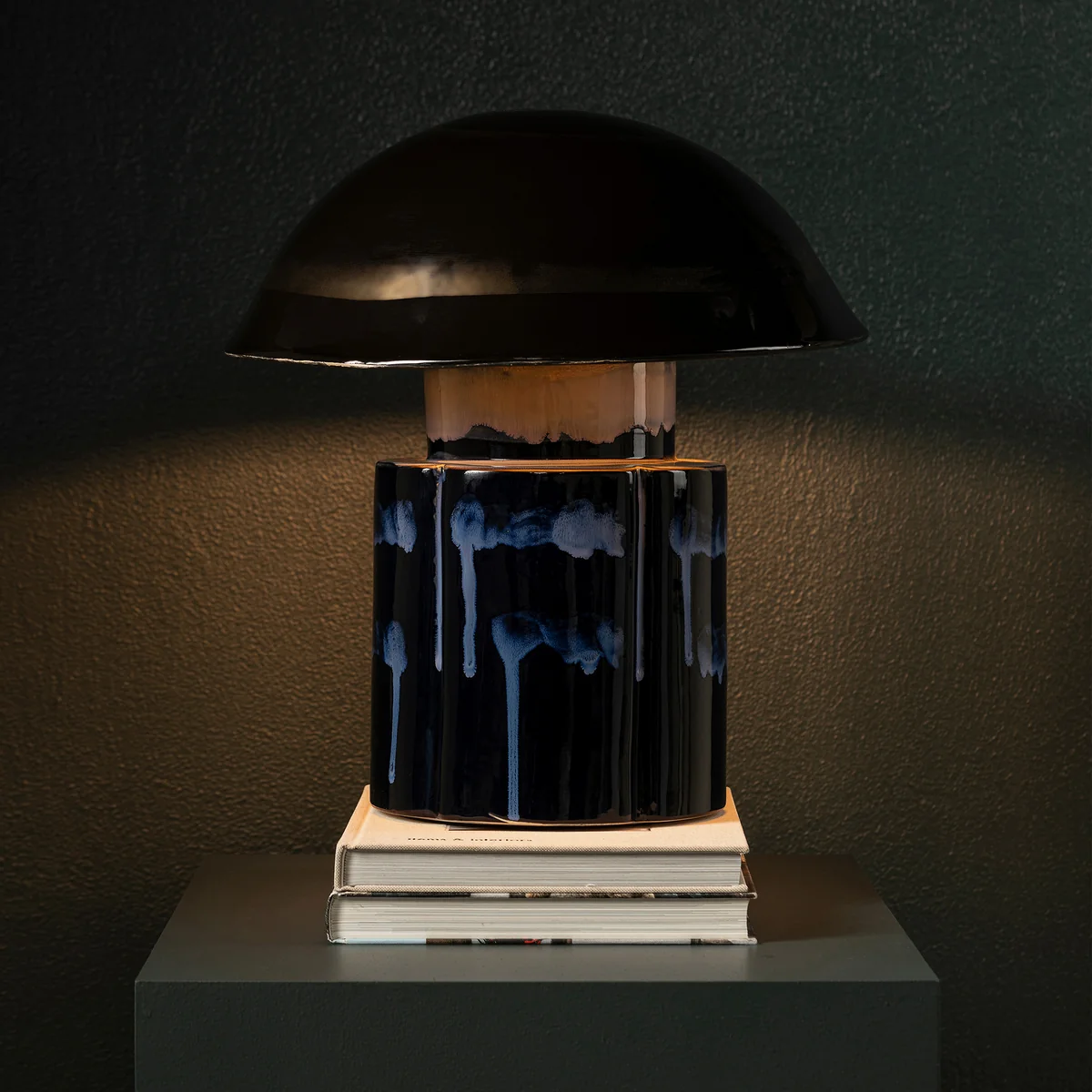 Tiefblaue Tischleuchte mit reaktiver Glasur
