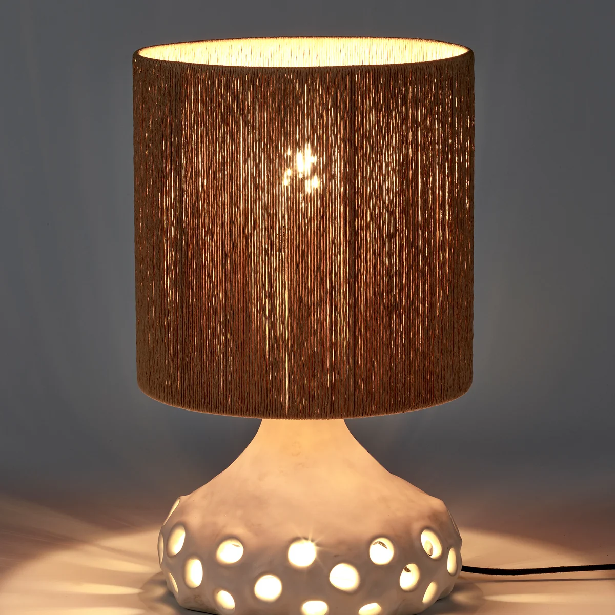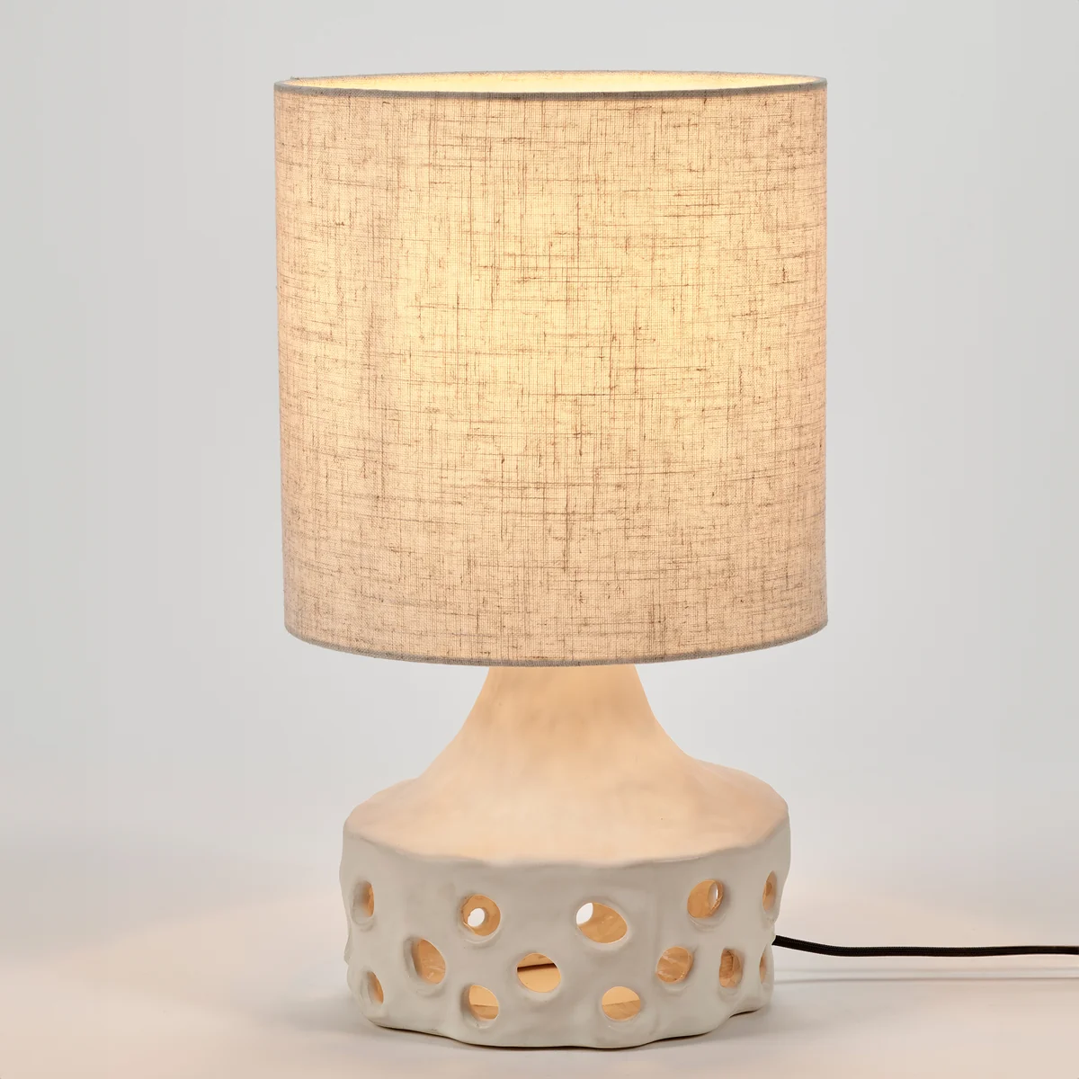 Die Oya Tischleuchte von Serax, entworfen von Sophie Casier, verbindet mediterrane Inspiration mit stilvollem Design. Der Fuß aus hochwertigem Steingut erinnert an die charakteristischen Formen eines charmanten Dorfes auf Santorin, während der runde Leinenschirm der Lampe eine elegante Note verleiht und für ein warmes, angenehmes Licht sorgt.