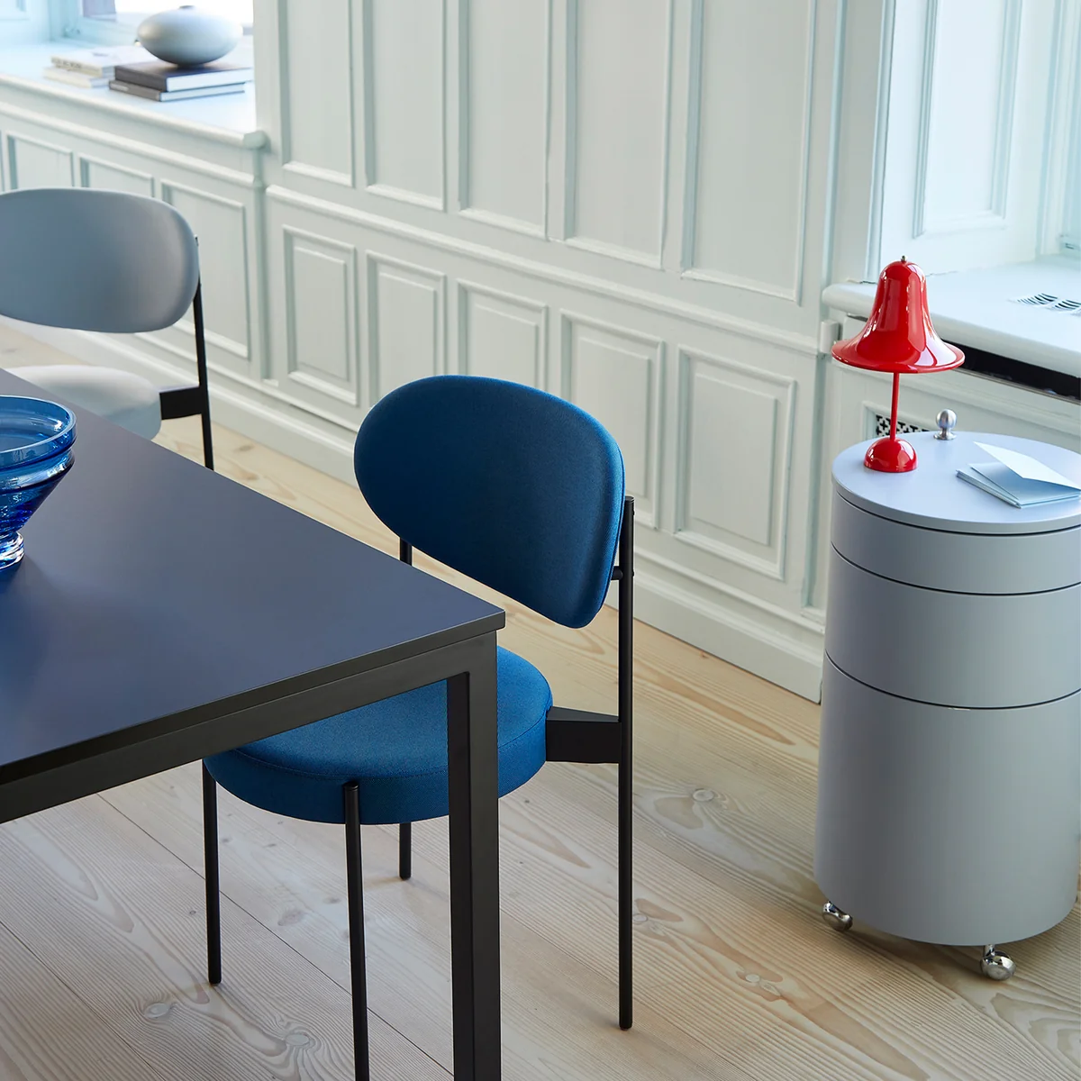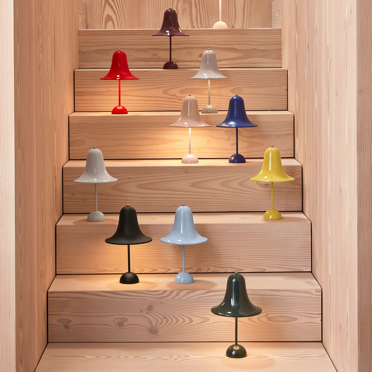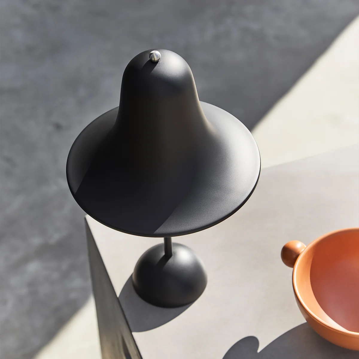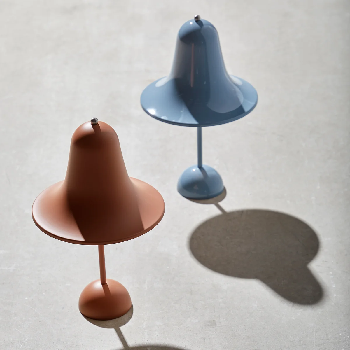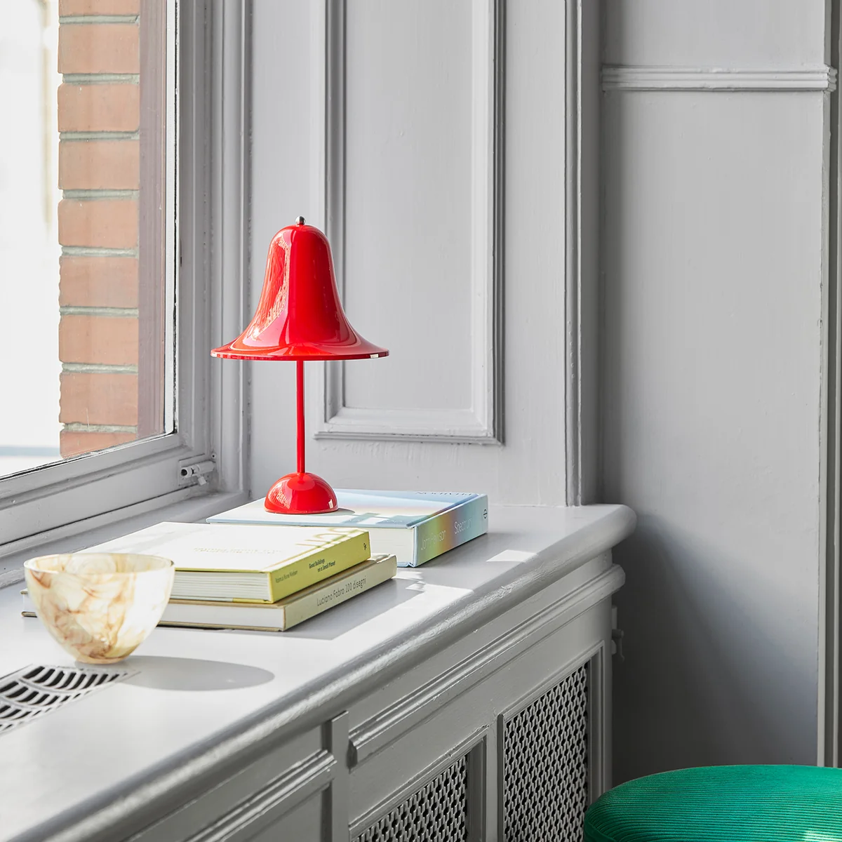 Die Pantop Portable LED Akkuleuchte des dänischen Herstellers Verpan ist die moderne Auflage der von Verner Panton entworfenen Erstauflage aus dem Jahre 1980. Sie ist seit Jahrzehnten fester Bestanteil der Verpan-Kollektion. Das Design der Pantop Leuchte ist durch seinen glockenförmigen, weit ausladenden Schirm mit Öffnung nach unten charakterisiert. Die Neuauflage der Pantop Portable LED-Akkuleuchte setzt moderne Materialien und Technologien ein. Sie besitzt ein hohes Maß an Benutzerfreundlichkeit und Flexibilität.