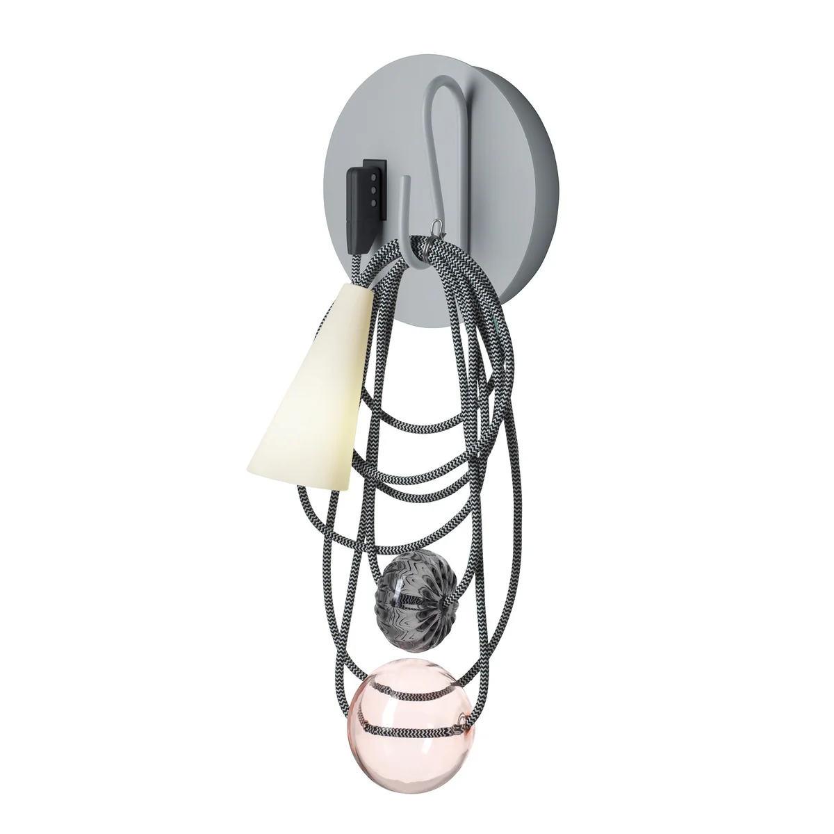 Erhältlich ist die Filo Wandleuchte in unterschiedlichen Varianten, bei denen die Farben des Kabels und der Kugeln variieren.