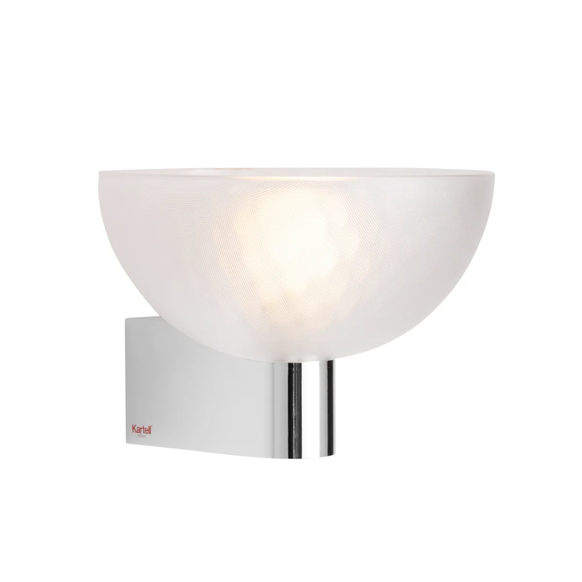 Die Fata Wandleuchte von Piero Lissoni für Kartell bezaubert mit der Einzigartigkeit ihres Schirms. Durch die Gravur- und Bearbeitungstechnologie der Pressform entsteht - je nach Blickwinkel - eine neue Reflexion des Lichts. Sie kann an den Wänden im Wohn- oder Schlafzimmer angebracht werden - magische Lichtspiele sind garantiert!