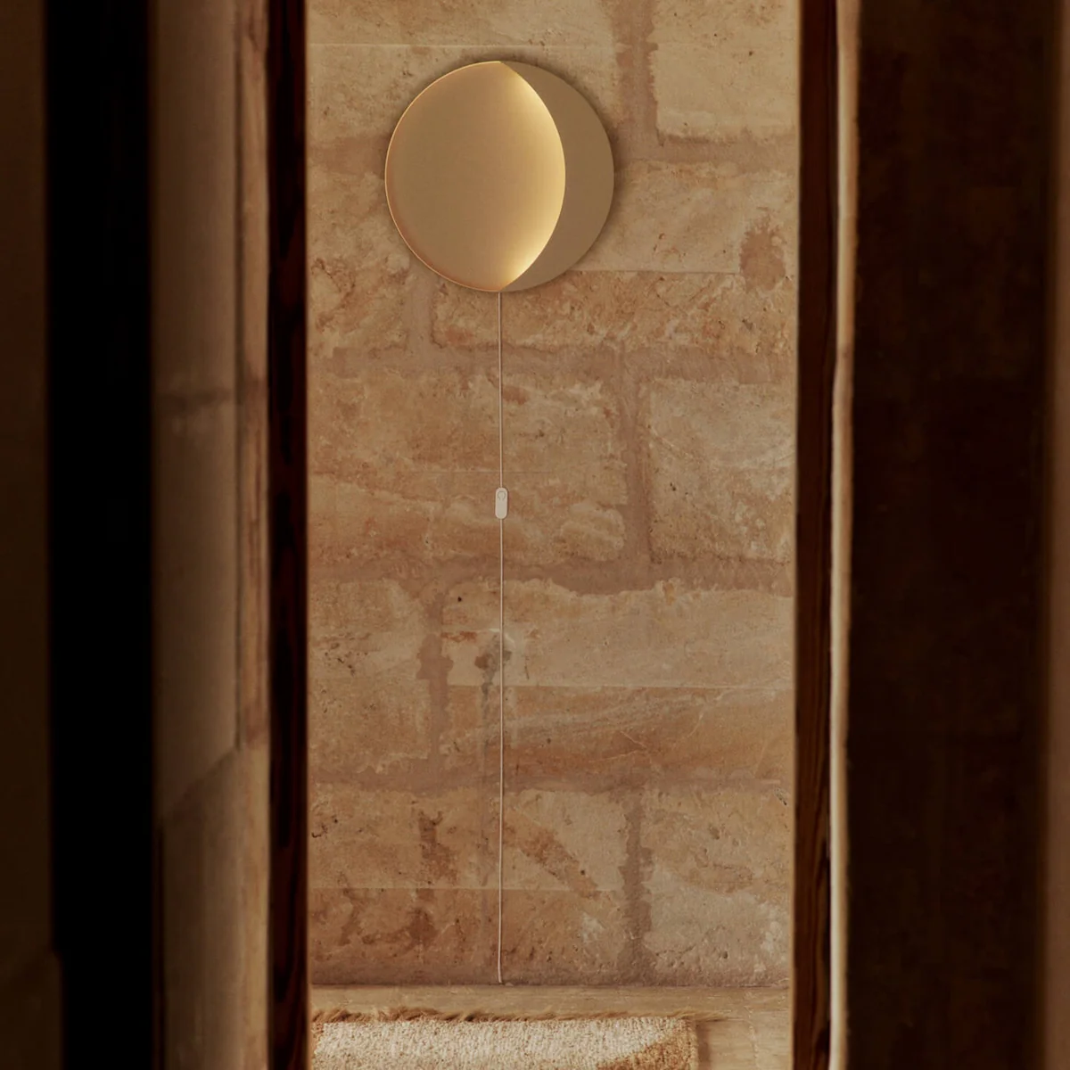 Die Neba LED Wandleuchte von Ferm Living verleiht dem Kinderzimmer eine poetische und beruhigende Atmosphäre. Inspiriert von der Form einer Mondsichel, entsteht durch das leicht abgesetzte, kreisförmige Metallblech die Illusion eines sanft leuchtenden Dreiviertelmonds. Die pulverbeschichtete Oberfläche unterstreicht das elegante Design, während die stufenlose Dimmfunktion eine individuell anpassbare Beleuchtung ermöglicht – perfekt für entspannte Abende und sanftes Einschlafen.