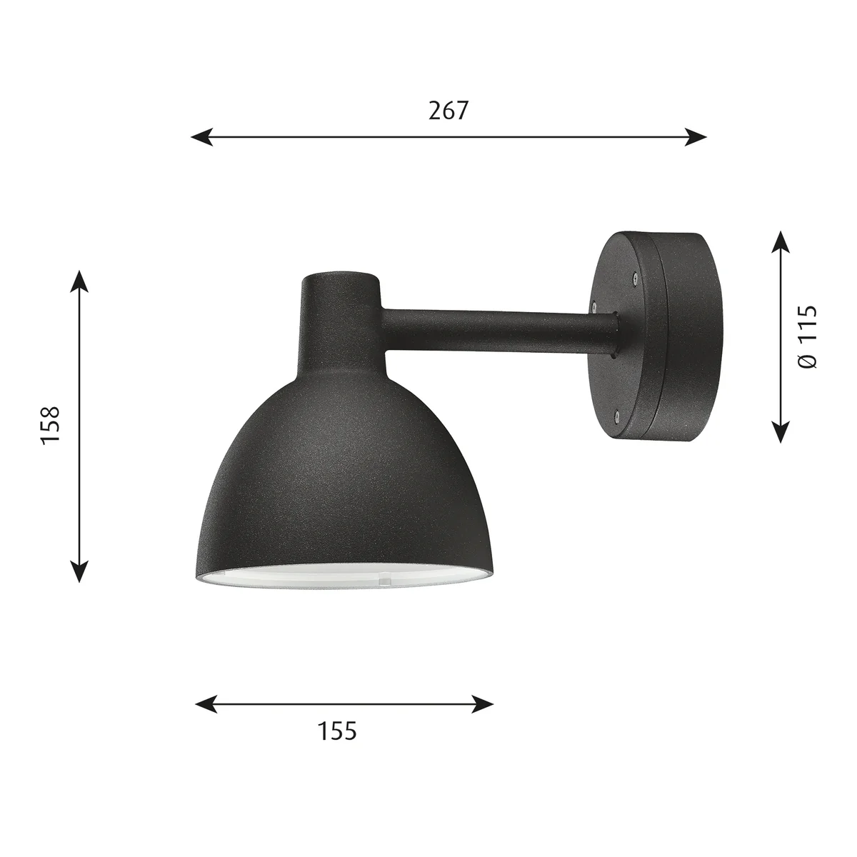 Toldbod 155 ist eine Leuchte, deren Gestaltung sich nach dem PH-Ellipsenreflektor richtet. Auf diese Weise spendet die Wandleuchte von Louis Poulsen ein blendfreies, nach unten gerichtetes Licht. Der weiße Innenanstrich der Toldbod Wandleuchte sichert eine gute Reflexion und damit eine effiziente Lichtabgabe.