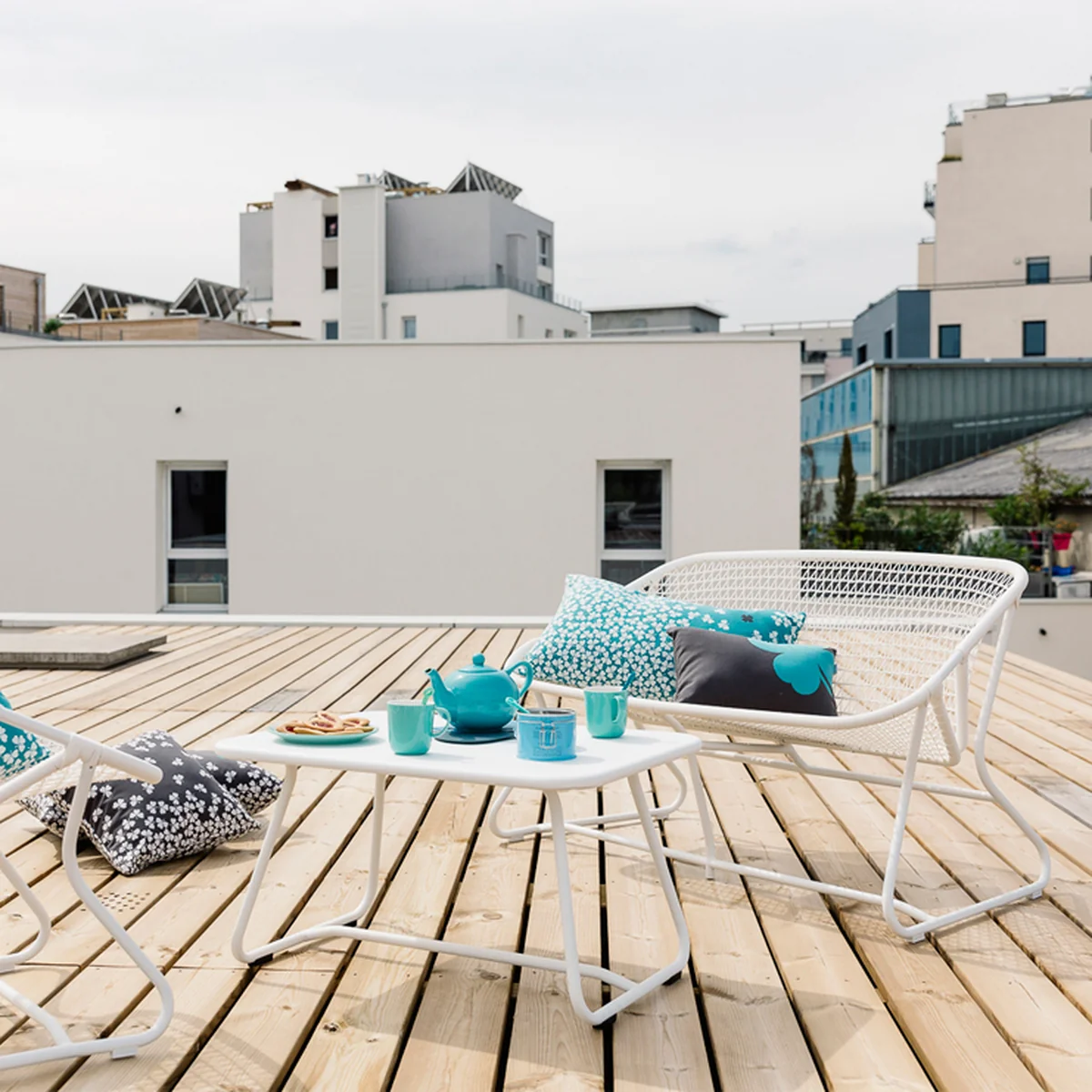 Jung, bequem und leicht zugänglich – die Sixties Bank von Fermob ist flexibel einsetzbar und eignet sich für den Innen-und Außenbereich. Das Retro-Design stammt von Frédéric Sofia. Mit seinen großzügigen und runden Formen bildet die Sixties Bank einen beruhigenden Rückzugsort, der zur Entspannung vom Alltag einlädt und ist eine regelrechte Einladung, es sich zu zweit auf dieser Bank bequem zu machen.