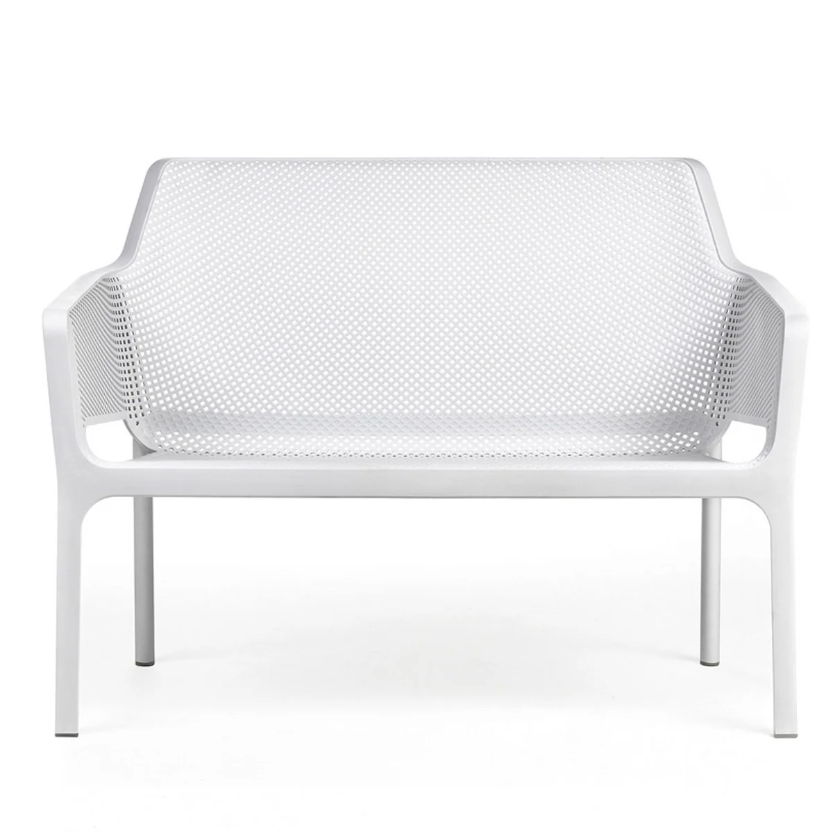 Auf der Net Bank von Nardi lassen sich entspannte Sonnenstunden im Garten verbringen. Mit einer Länge von 116 cm bietet die Bank entspannt Platz für zwei Personen und sorgt dank der Armlehnen für maximalen Komfort. Gefertigt ist die Bank aus durchgefärbtem, recycelbarem Fiberglas-Polypropylen, das strapazierfähig ist und sich bestens für die Nutzung im Außenbereich eignet. Das Material ist UV-beständig und mit einer rautenförmigen Perforation versehen, wodurch Regenwasser ganz einfach abfließen kann. Gleichzeitig findet eine Belüftung des Rückens statt, was besonders an heißen Tagen von Vorteil ist.