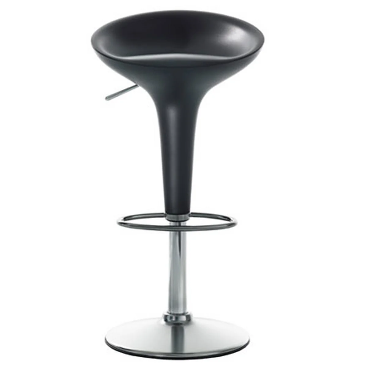 Der Bombo Barhocker ist drehbar und pneumatisch höhenverstellbar. Die Form des Bombo Barhockers wird dabei von den weichfließenden Linien der Sitzschale geprägt, die ihm nicht nur ein anmutiges Äußeres verleihen, sondern Bombo auch zu einer äußerst bequemen Sitzgelegenheit machen.