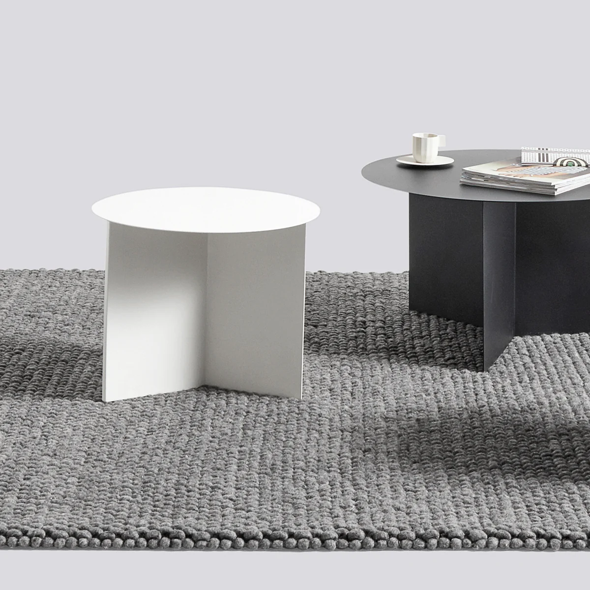 Slit Table Round ist ein schlanker Beistelltisch aus Metall von HAY. Der runde Tisch besitzt eine sehr grafische Ausstrahlung.