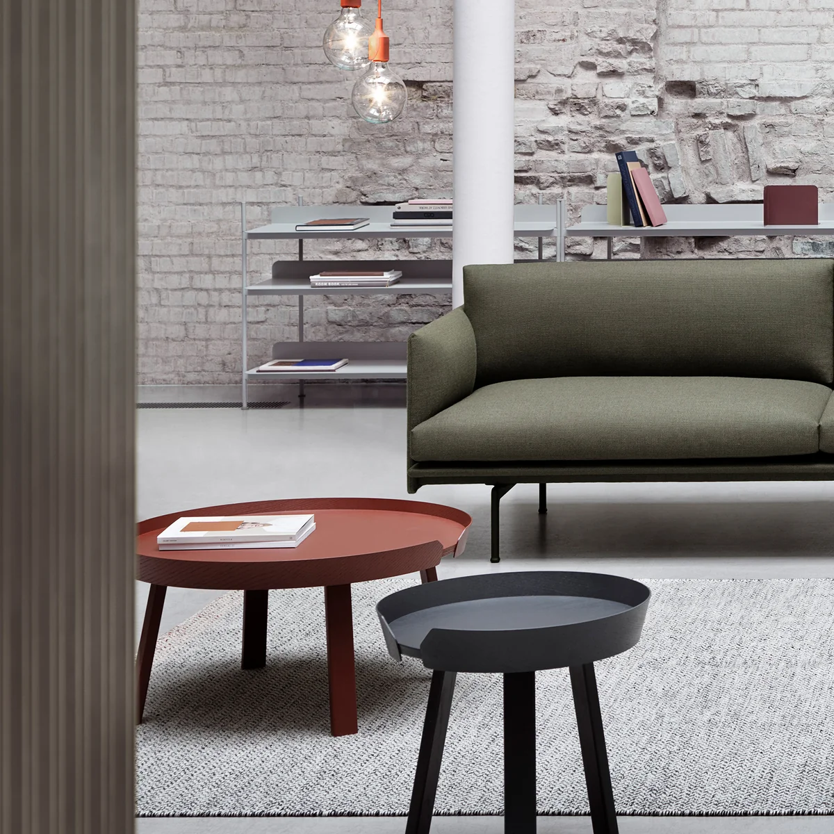 Der Around Tisch von Muuto ist in verschiedenen Größen und in verschiedenen Farben lieferbar. Auch eine Version aus Eichenholz ist erhältlich.