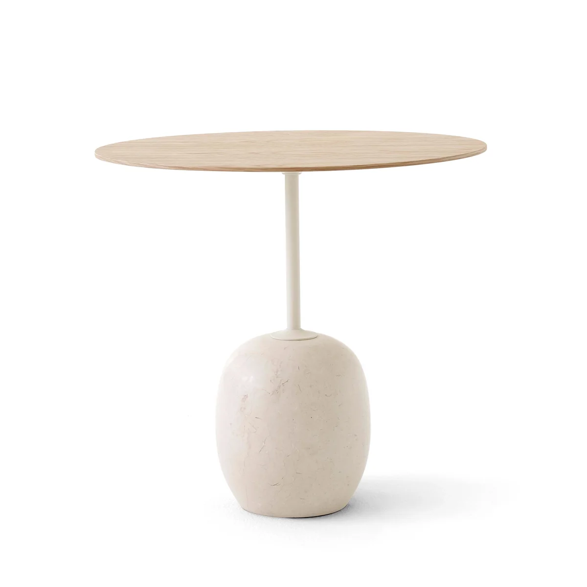 Der Lato Beistelltisch von &Tradition überzeugt durch seine skulpturähnliche Silhouette mit einer schlanken Tischplatte in oval oder rund, die durch eine Marmor Basis ausgeglichen wird. Der Entwurf stammt von Luca Nichetto, der sich für den Beistelltisch von einem auf den Kopf gestellten Lollipop inspirieren ließ.