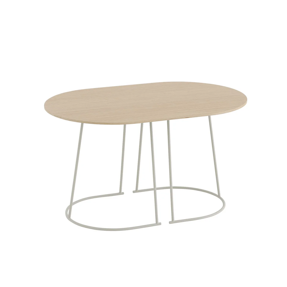 Der von der skandinavischen Designerin Cecilie Manz entworfene Airy Couchtisch zeichnet sich durch sein zeitloses, minimalistisches Design mit harmonischen Formen aus. Hergestellt wird der „luftige“ Couchtisch aus einer polierten, ovalen Furnierholzplatte, bei der die einzelnen Schichten des Furniers an der Seite erkennbar sind und zugleich als dekoratives Element fungieren. Das Untergestell aus pulverbeschichtetem Stahl, verleiht dem Tisch seinen leichten und filigranen Charakter, der dem Airy Couchtisch seinen Namen gibt.