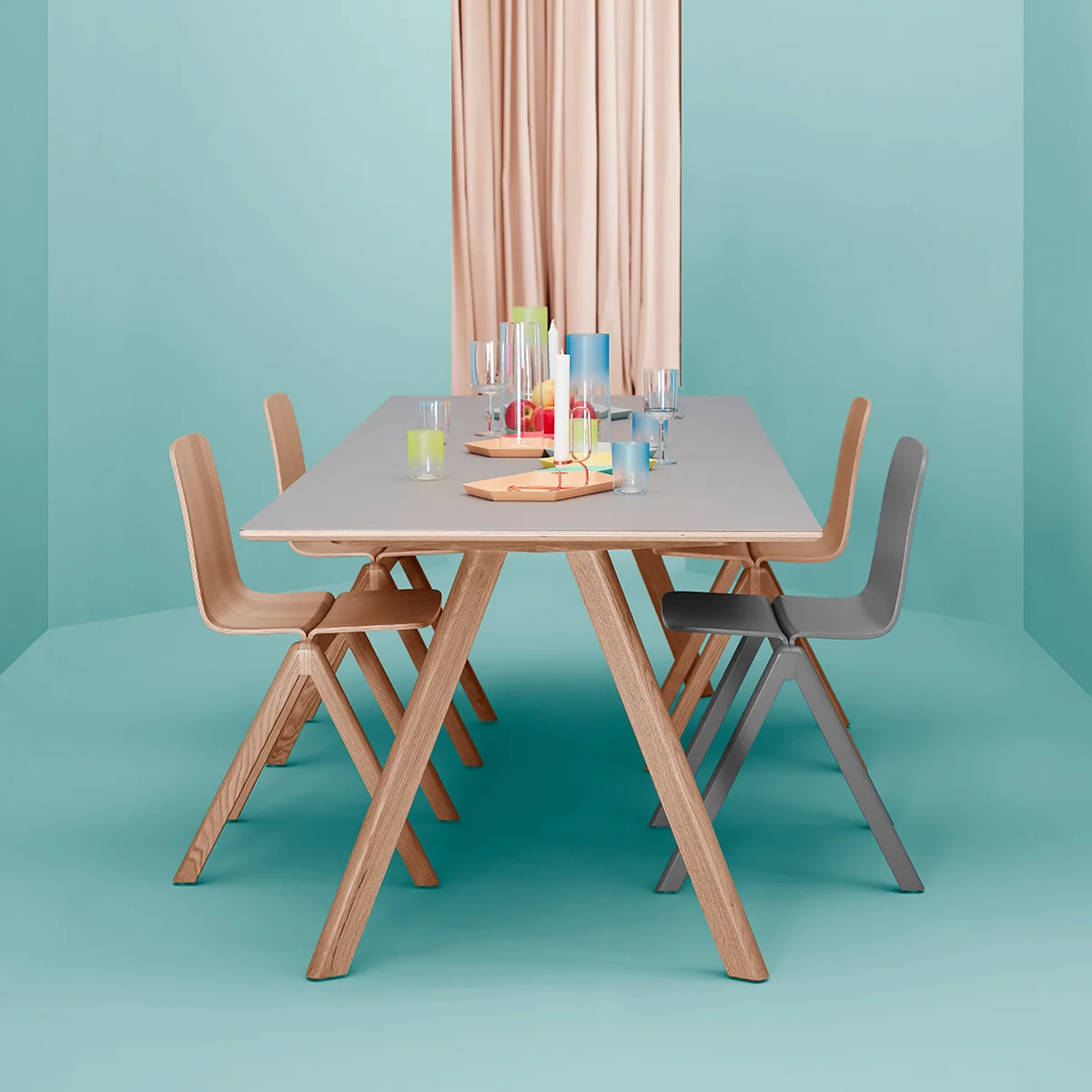 Denn es war den beiden Designern auch ein Anliegen, sich mit ihrem Copenhague Esstisch CPH30 vom institutionellen und bürokratischen Ausdruck traditioneller Möbel in Lerneinrichtungen zu befreien, und Objekte mit größerer Originalität und einer wohnlicheren Anmutung zu entwerfen.