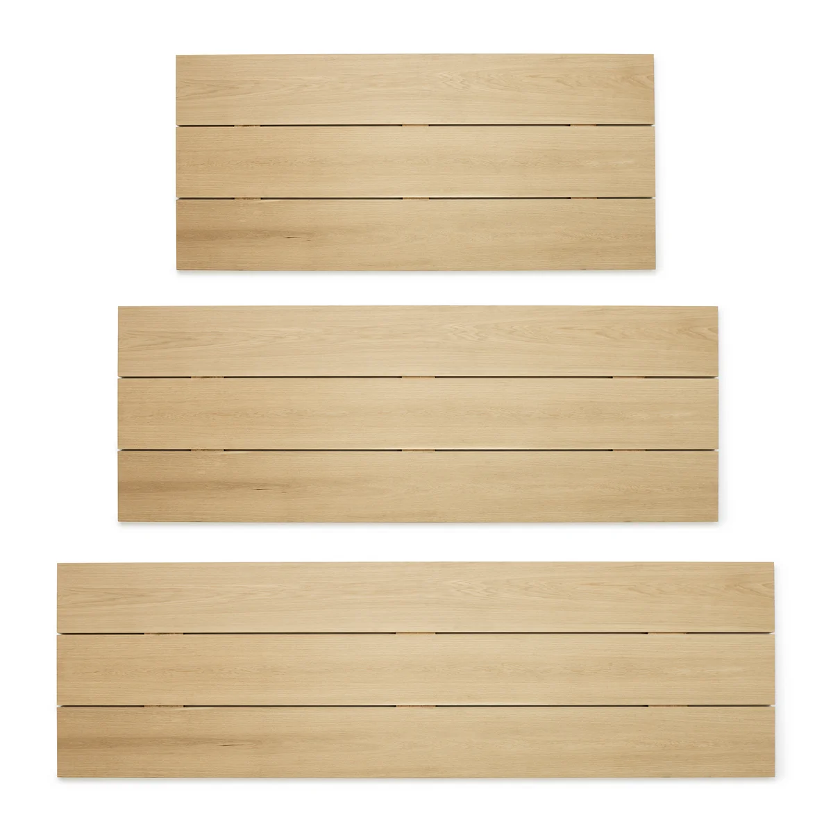 Der Slice Table von Hans Toft Hornemann für Normann Copenhagen ist ein Esstisch in klassischem, nichtsdestotrotz attraktivem Look und mit einer einfachen, reduzierten Formgebung. Drei große, lange Bretter formen die Tischplatte. Die schmalen Lücken zwischen den Holzplanken sind es, die dem Slice Table seinen einzigartigen, leicht rustikalen Charakter verleihen. Das typisch skandinavische zurückhaltende Design, verleiht dem Tisch aus Holz einen gleichzeitig massiven und zeitgenössischen, modernen Look.