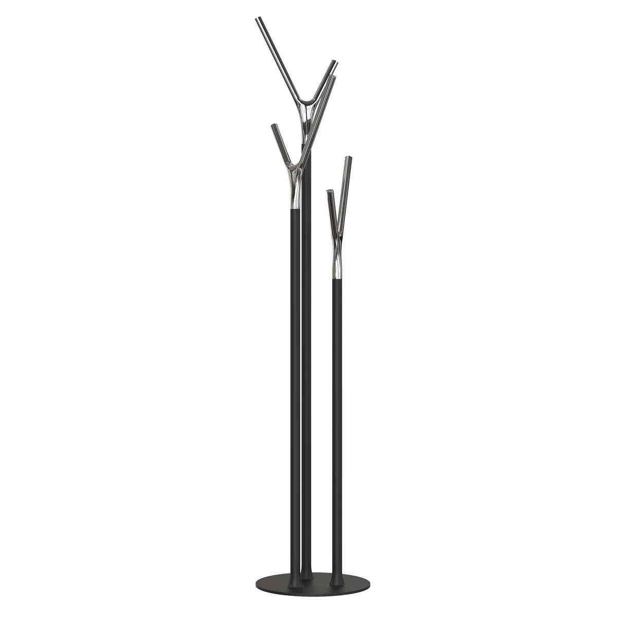 Frost bietet den Kleiderständer in verschiedenen Farbvarianten an. Während die verästelten Elemente der Kleiderstange immer aus glänzendem Edelstahl geliefert werden, kann für das Grundgerüst zwischen Grün, Weiß, Rot, Schwarz und einer matten Edelstahlvariante gewählt werden.