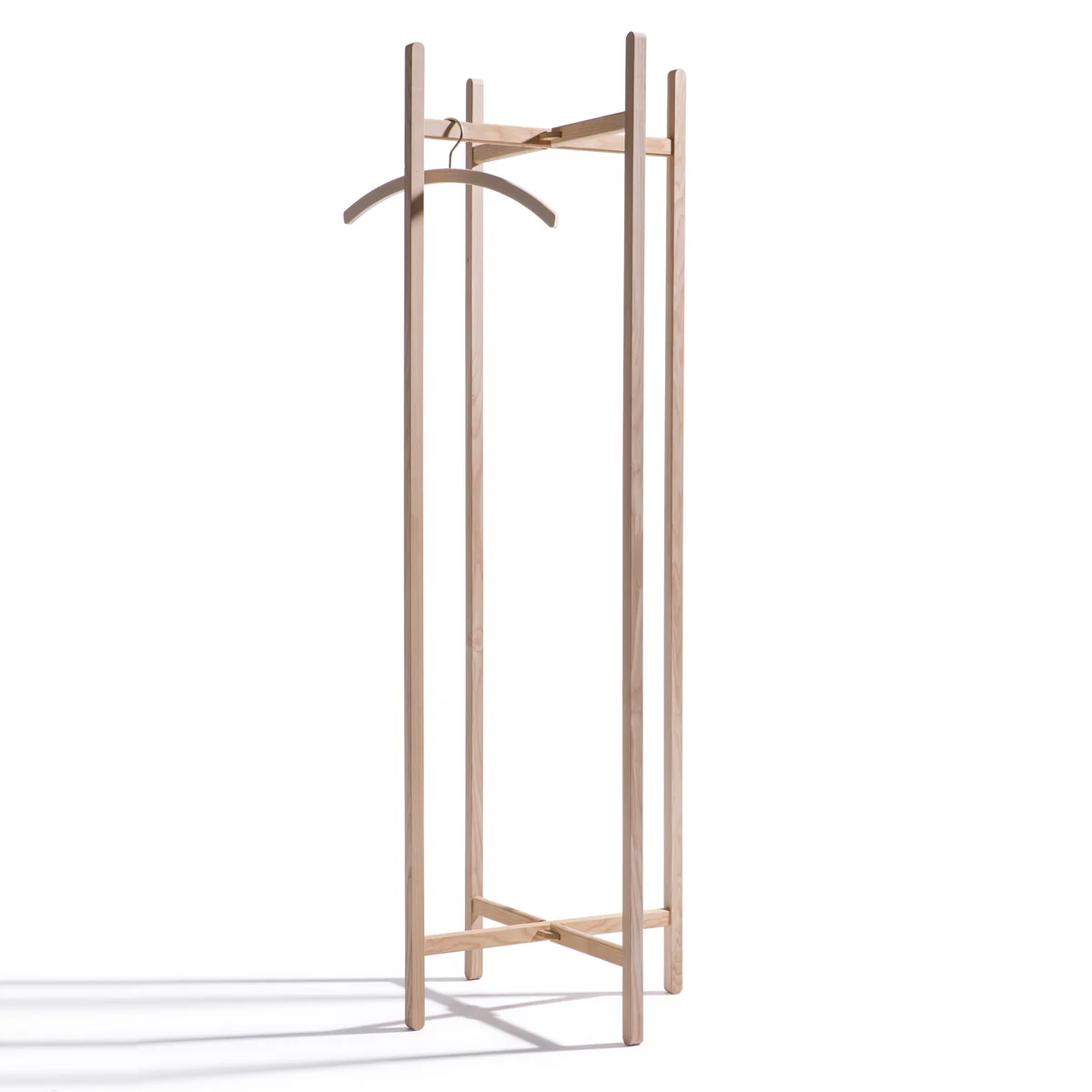 Wenn nur wenige Jacken aufzuhängen sind oder die Garderobe transportiert werden soll, ist die New Hang On im Handumdrehen flach gemacht. Wenn sich Gäste ankündigen oder auch mal mehrere Kleidungsstücke an dem praktischen Möbelstück Platz finden sollen, wird sie ebenso schnell wieder zur großen Stehgarderobe mit viel Stauraum.
