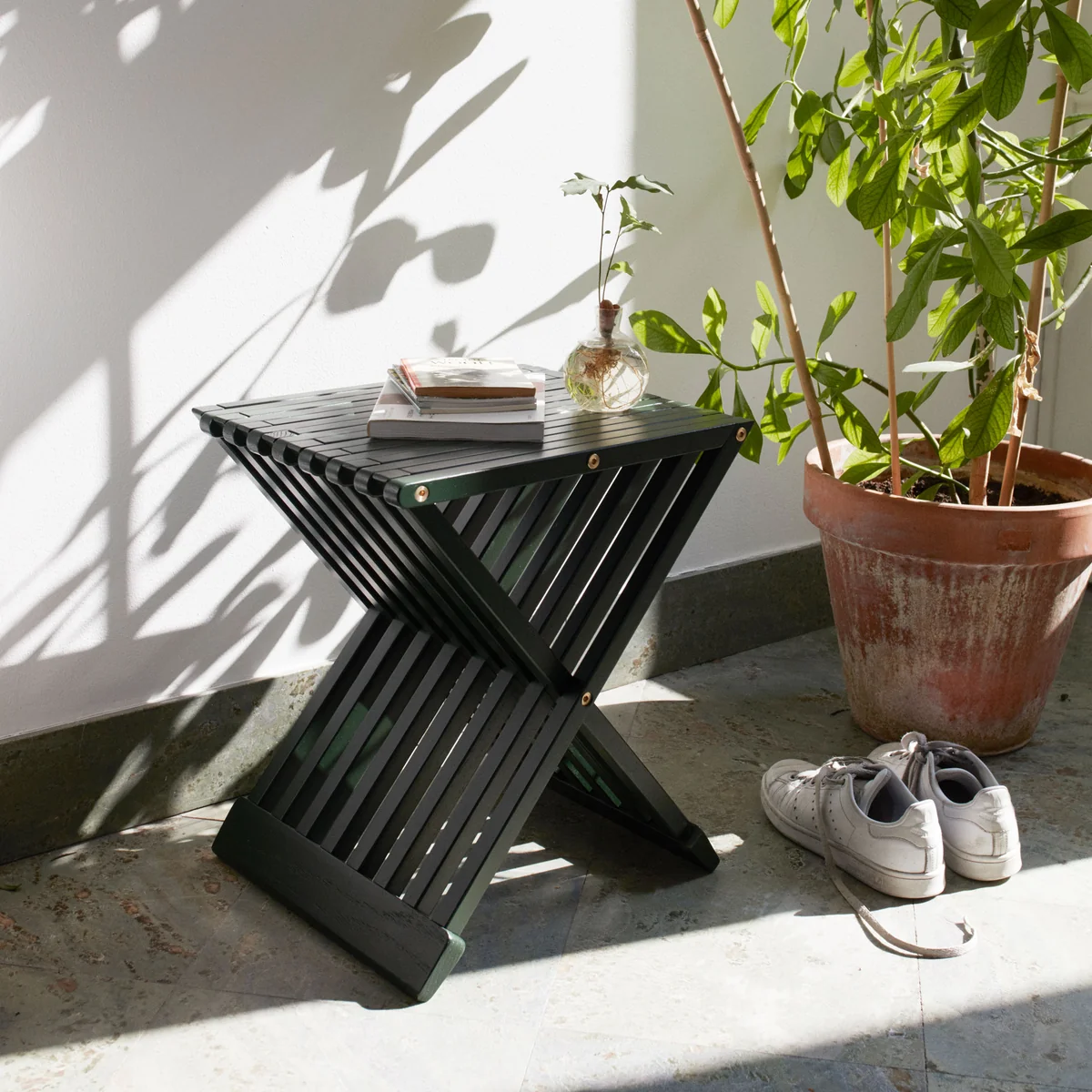 Auch der Skagerak Fionia Hocker ist Ausdruck hervorragenden Designs und Handwerks. Sogar zusammengeklappt ist der Fionia Hocker unglaublich elegant. Er kann überall im Haus als Hocker, Beistelltisch, Nachttisch oder als Blumentischchen benutzt werden. Jens H. Quistgaard ließ sich für den Hocker von antiken Sitzmöglichkeiten aus dem römischen Reich inspirieren.