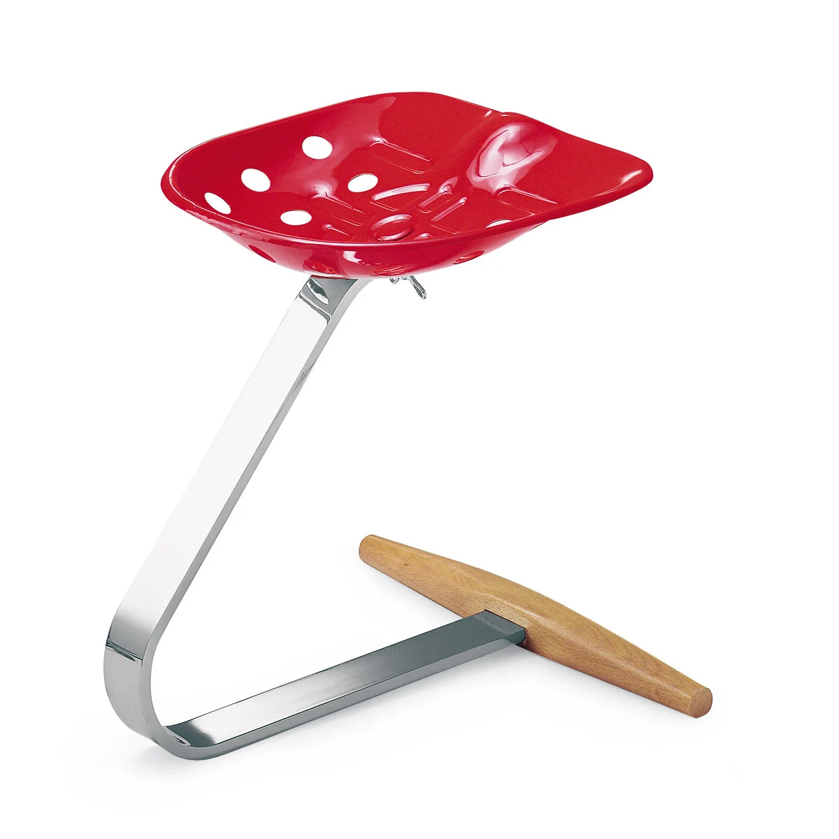Der Mezzadro Hocker ist ein Design-Klassiker der beiden Brüder Achille und Pier Giacomo Castiglioni.