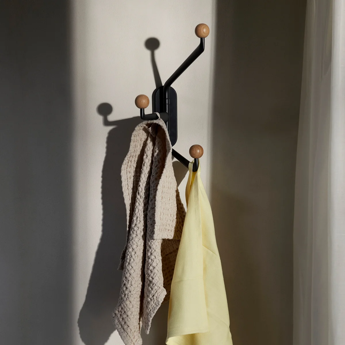 Kleiderhaken aus pulverbeschichtetem Aluminium und Massivholz