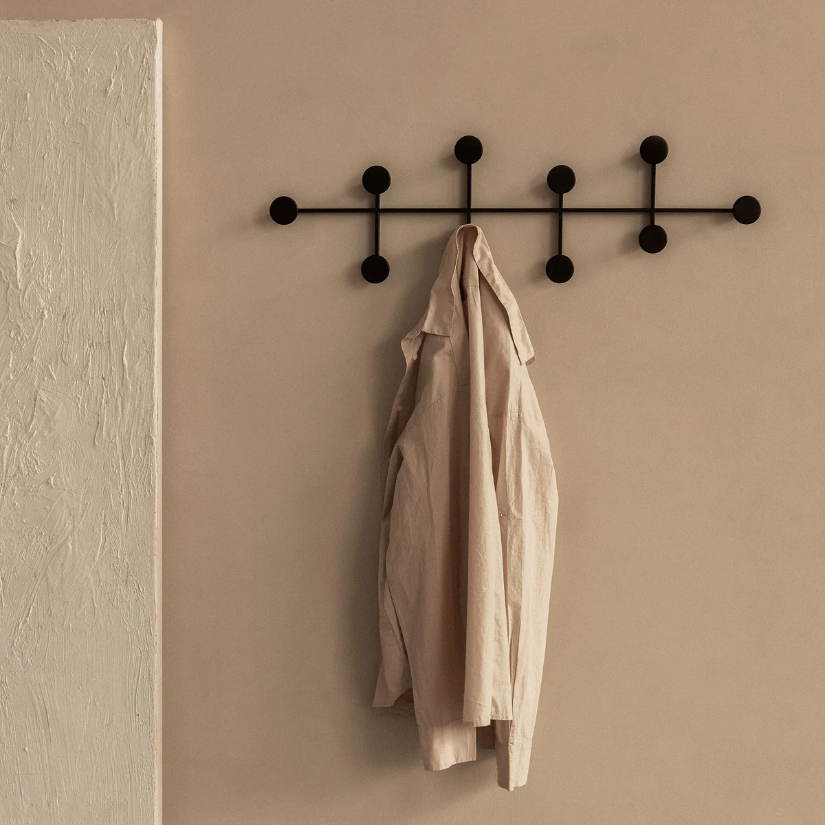 Der Kleiderhaken lässt sich einfach an der Wand anbringen und alle Schrauben sind im Rahmen verborgen, damit nichts den klaren Eindruck stört. Er wird aus pulverbeschichtetem Metall in verschiedenen Farben hergestellt. Außerdem ist er in verschiedenen Größen erhältlich.