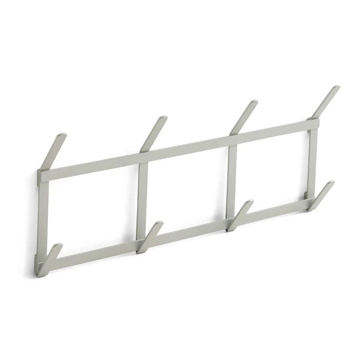 Die Tape Garderobe von BIG-GAME für HAY zeichnet sich durch ein minimalistisches und vielseitiges Design aus, bei dem die gebogenen Stahlstangen in einem Gittermuster angeordnet sind. Sie lässt sich leicht an der Wand befestigen und bietet mehrere Haken in verschiedenen Höhen für optimale Aufhängeoptionen. Das schlichte Design fügt sich nahtlos in Flure, Schlafzimmer und andere Räume im Haus ein.